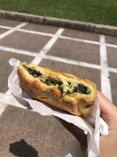 Ένα μοντέρνο μικρο-αρτοποιείο ξεφουρνίζει ψωμιά εμπνευσμένα από τους φούρνους της Ρώμης, αλλά και λαχταριστές, χειροποίητες πίτες. Στο… μαύρο σαλάμι, η σπανακό(τυρο)πιτα είναι διαφορετική απ’ ό,τι έχεις συνηθίσει: η γέμιση περικλείεται από ένα ψωμάκι που θυμίζει φοκάτσια, και στο μείγμα μπαίνουν σέσκουλα, ραδίκια πράσα και μυρώνια. Το τυράκι είναι μείγμα φέτας με γαλομυζήθρα – σκέτη κόλαση, δηλαδή.