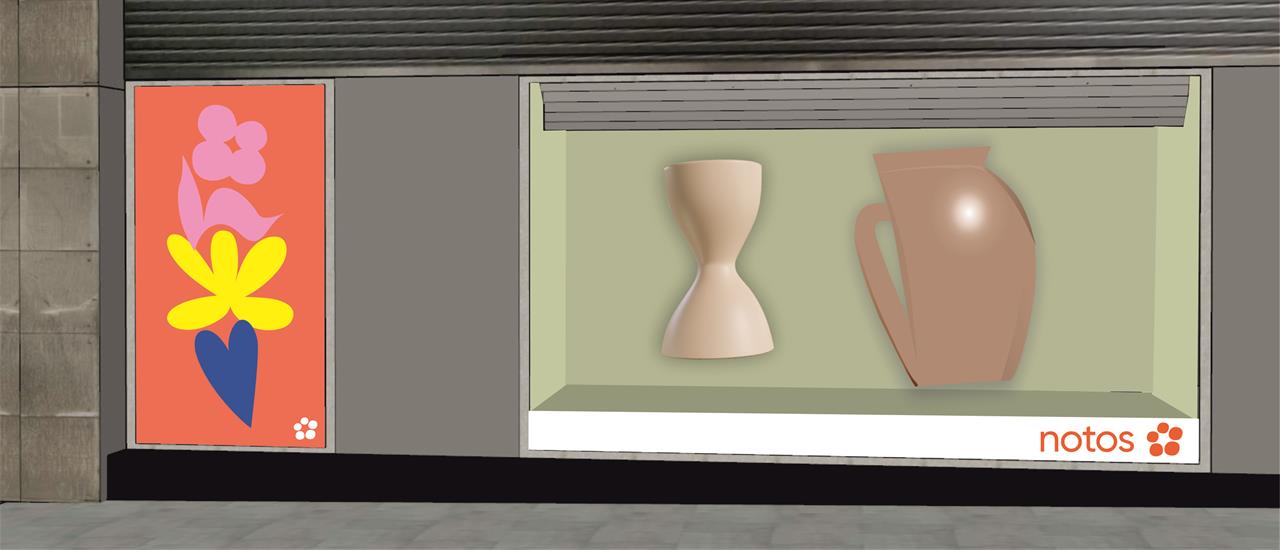 Ταυτόχρονα, στα πλαίσια της νέας εταιρικής ταυτότητας, δημιουργούνται συνοδευτικά εικαστικά τα οποία αποτυπώνονται στο εσωτερικό των πολυκαταστημάτων, στο notos.gr & σε όλη την επικοινωνία των πολυκαταστημάτων. Στόχος τους, μέσω των διακριτών σχημάτων και χρωμάτων τους είναι να ενδυναμώσουν το συναίσθημα οικειότητας και πιστότητας των καταναλωτών με τα πολυκαταστήματα, μέσω μιας σύγχρονης δυναμικότητας και στυλ.
