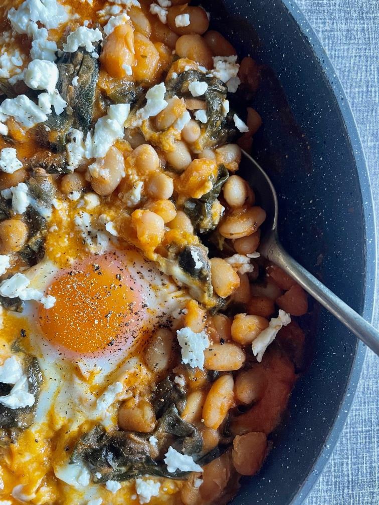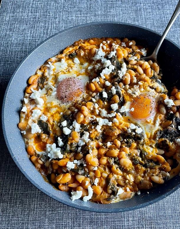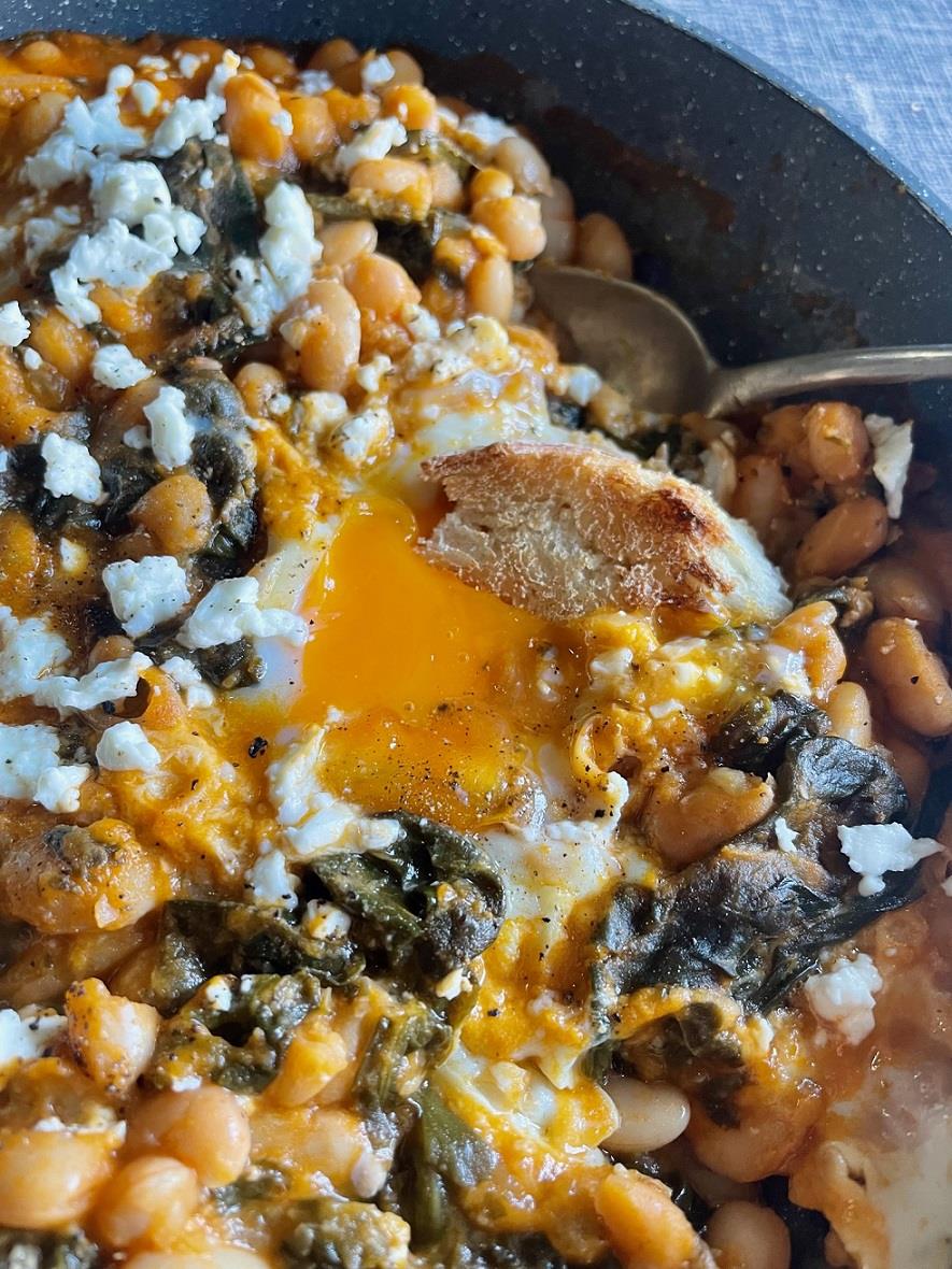 Η υπέροχη καυτερή harissa και τα μπαχαρικά φτιάχνουν ένα ιδιαιτέρως αρωματικό φαγητό. Το σπανάκι και η φέτα ταιριάζουν απόλυτα και η χαριστική βολή έρχεται από τα τηγανιτά αυγά.