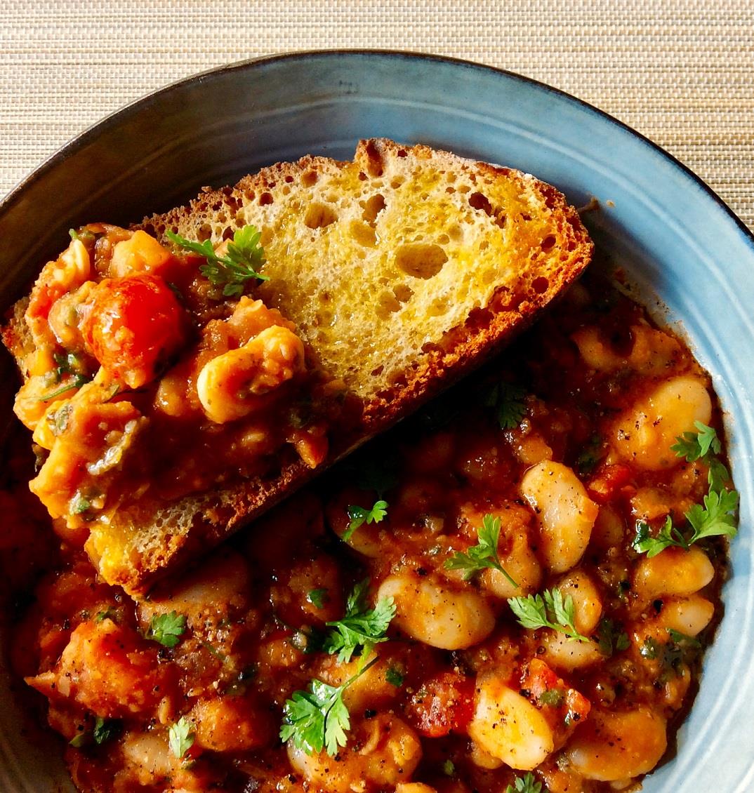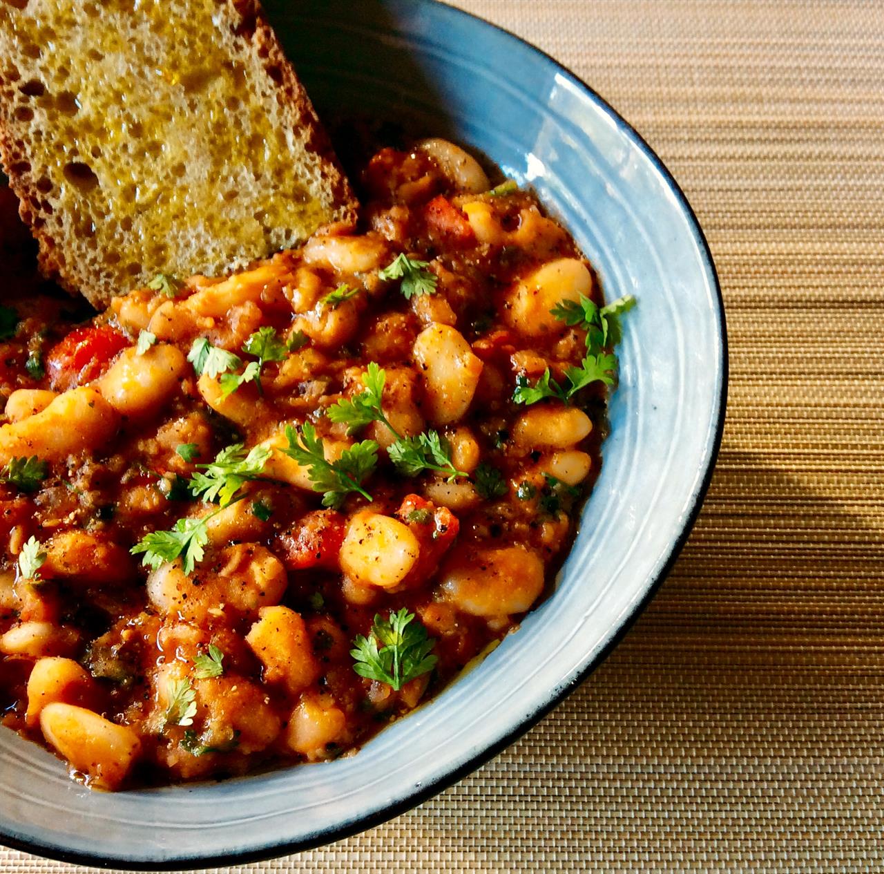 Η αγαπημένη Ιταλίδα puttanesca αποχωρίζεται για λίγο τα ζυμαρικά για να προσφέρει με χαρά τη νοστιμιά της στα φασόλια.