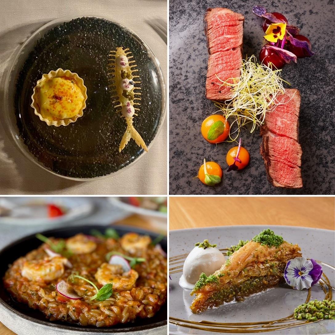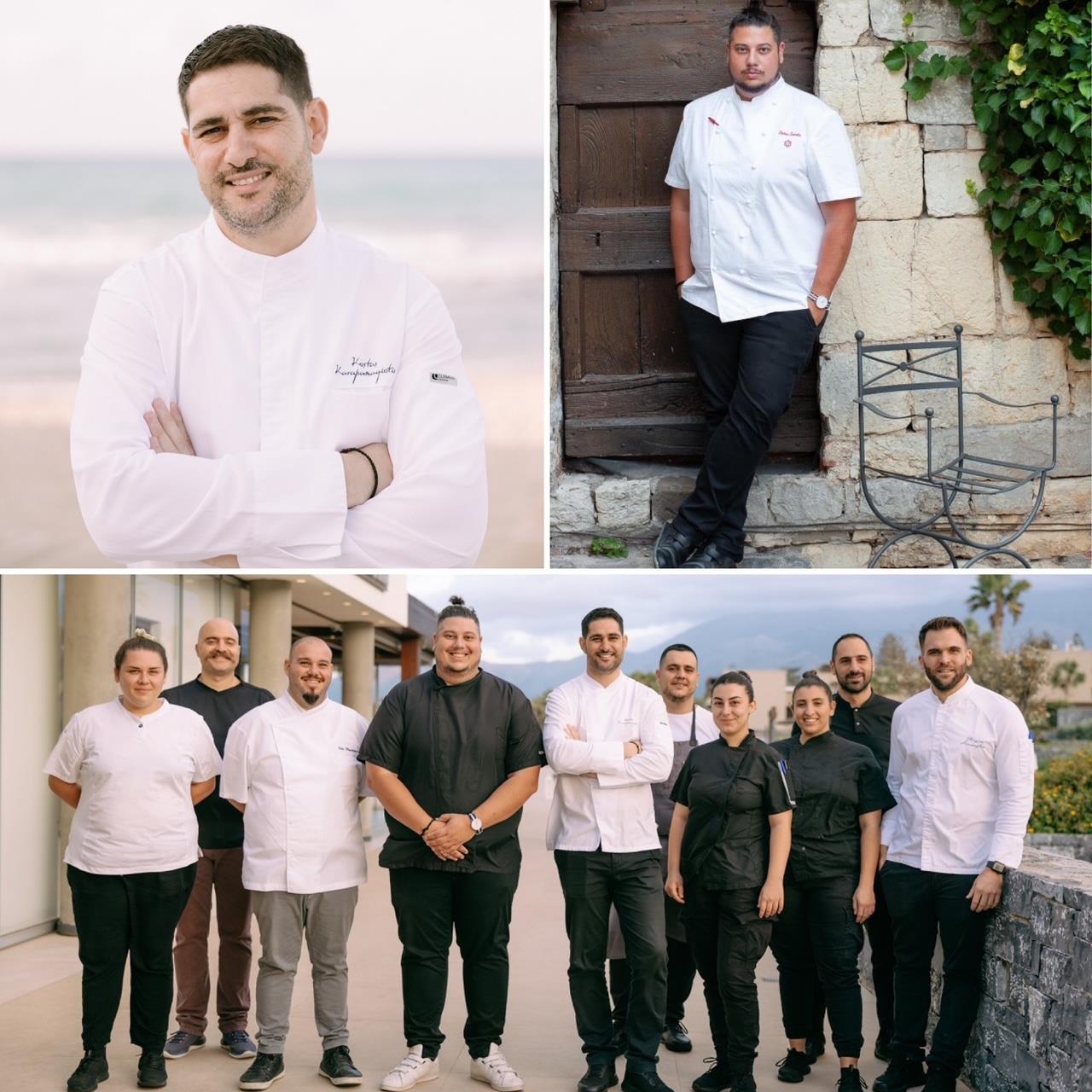 Επάνω αριστερά ο Κωνσταντίνος Καραπαναγιώτης, επάνω δεξιά ο Στέλιος Σακαλής και κάτω οι δύο chefs με την μπριγάδα τους