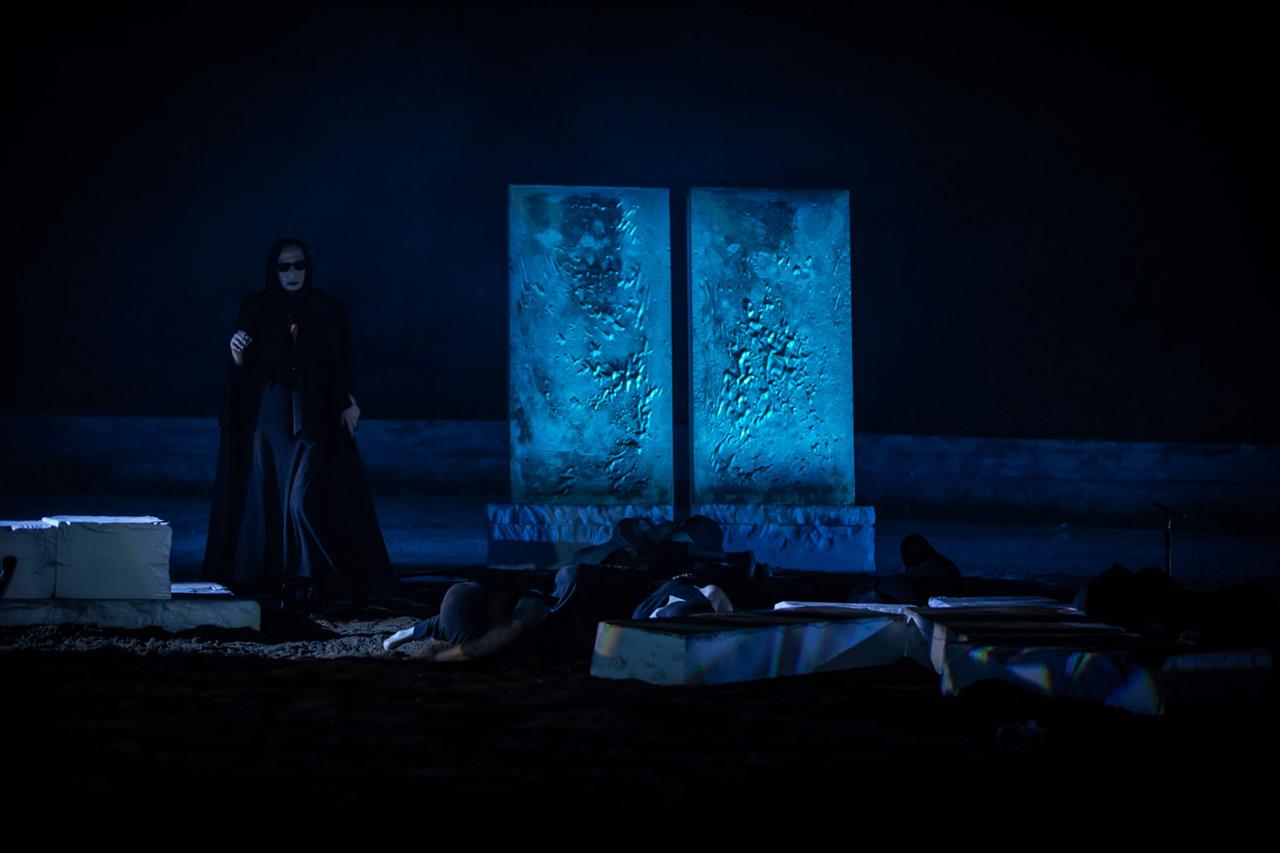 Μια εξαιρετική σκηνοθεσία, με ευφάνταστα κοστούμια (Βασίλης Μπαρμπαρίγος), που καλλιεργούν την προβολή στο μέλλον, με εξαιρετικές ερμηνείες και έναν καταπληκτικό Χορό.