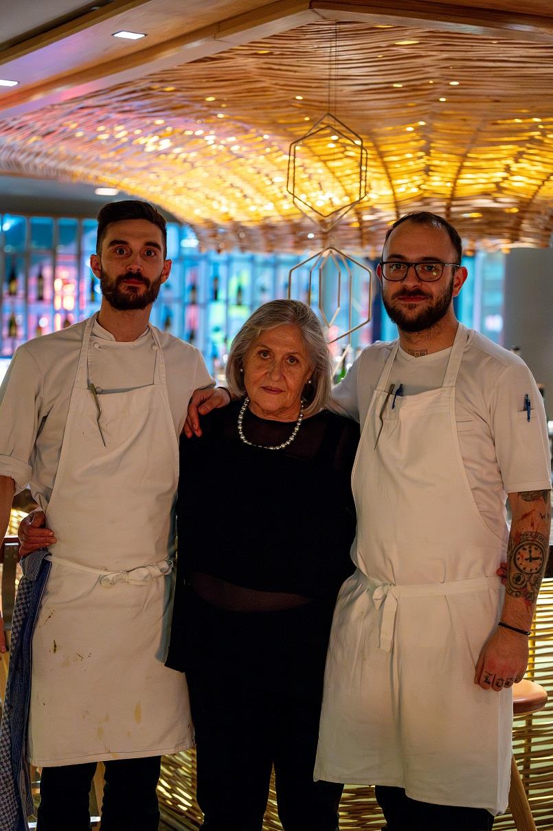 Η Γιώτα Κουφαδάκη ανάμεσα στον sous-chef Χρήστο Σιδηρόπουλο και στον chef Γιώργο Φελεμέγκα