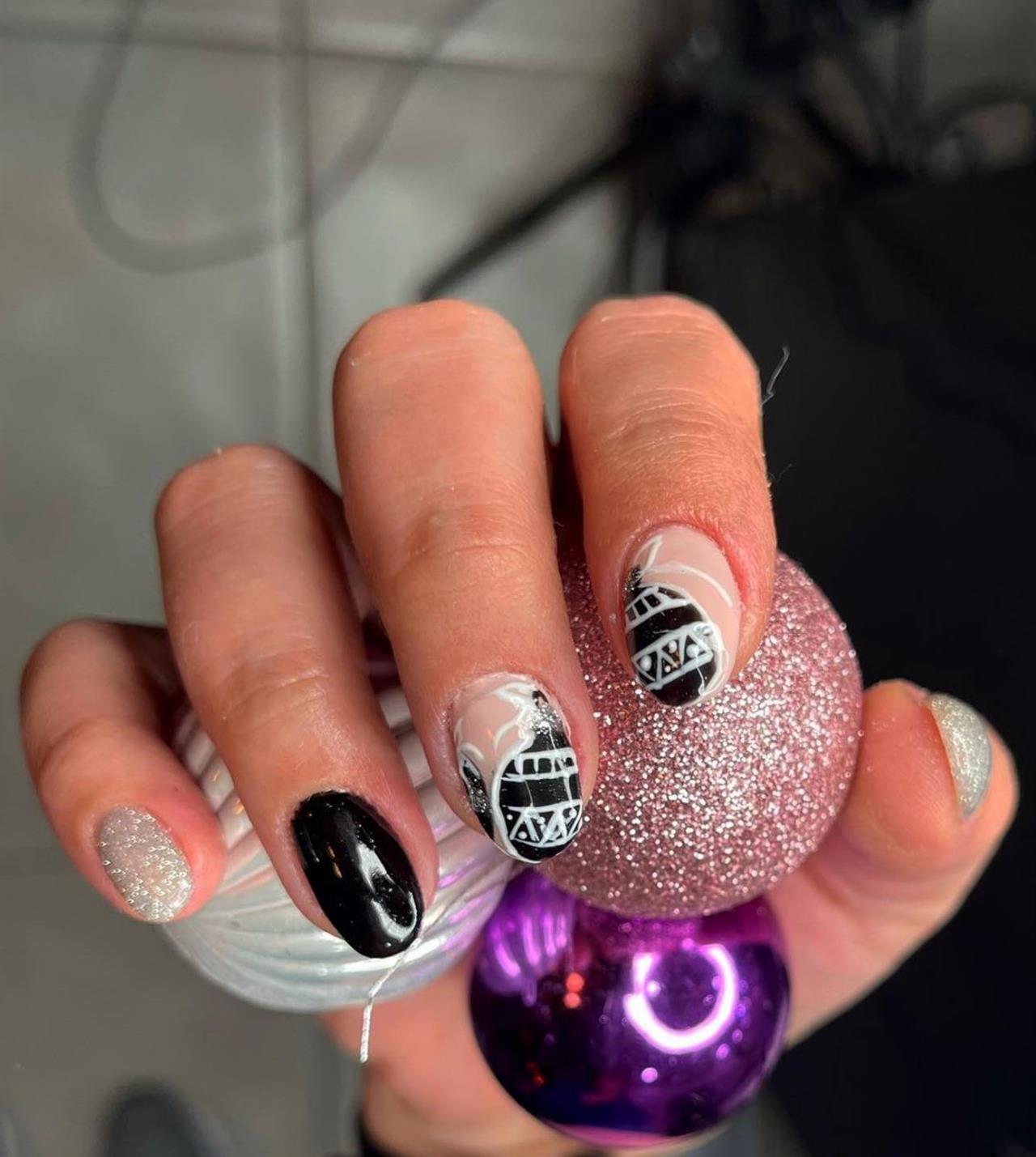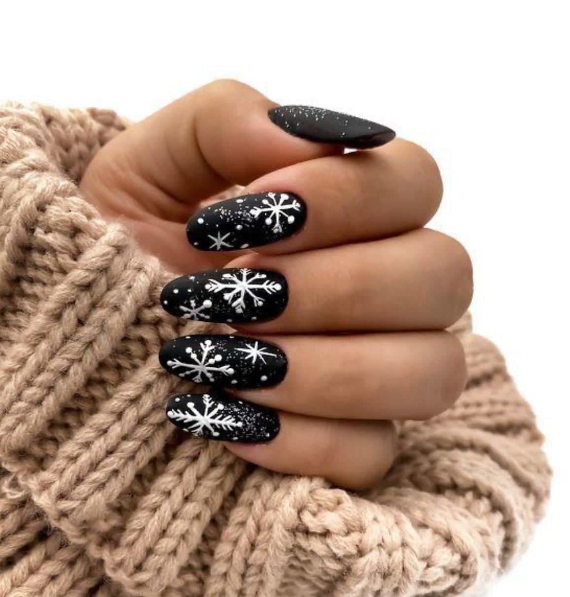 Μπορείς να επιλέξεις φωτεινές ή και ματ αποχρώσεις του μαύρου, όπως βλέπουμε στην παρακάτω φωτογραφία. Λίγες χιονονιφάδες αρκούν για να κάνουν το μανικιούρ σου απόλυτα γιορτινό και Χριστουγεννιάτικο.