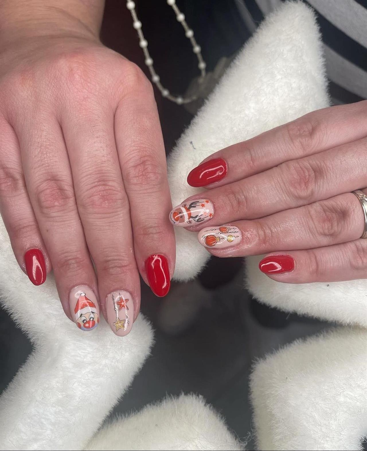 Μπορείς να σχεδιάσεις στα νύχια σου πολύχρωμα λαμπιόνια, ζαχαρωτά, Χριστουγεννιάτικα σχέδια του Άγιου Βασίλη, του Ρούντολφ ή Χριστουγεννιάτικες μπάλες. Η επιλογή είναι δική σου και είναι τόσα τα σχέδια που μπορείς να διαλέξεις.