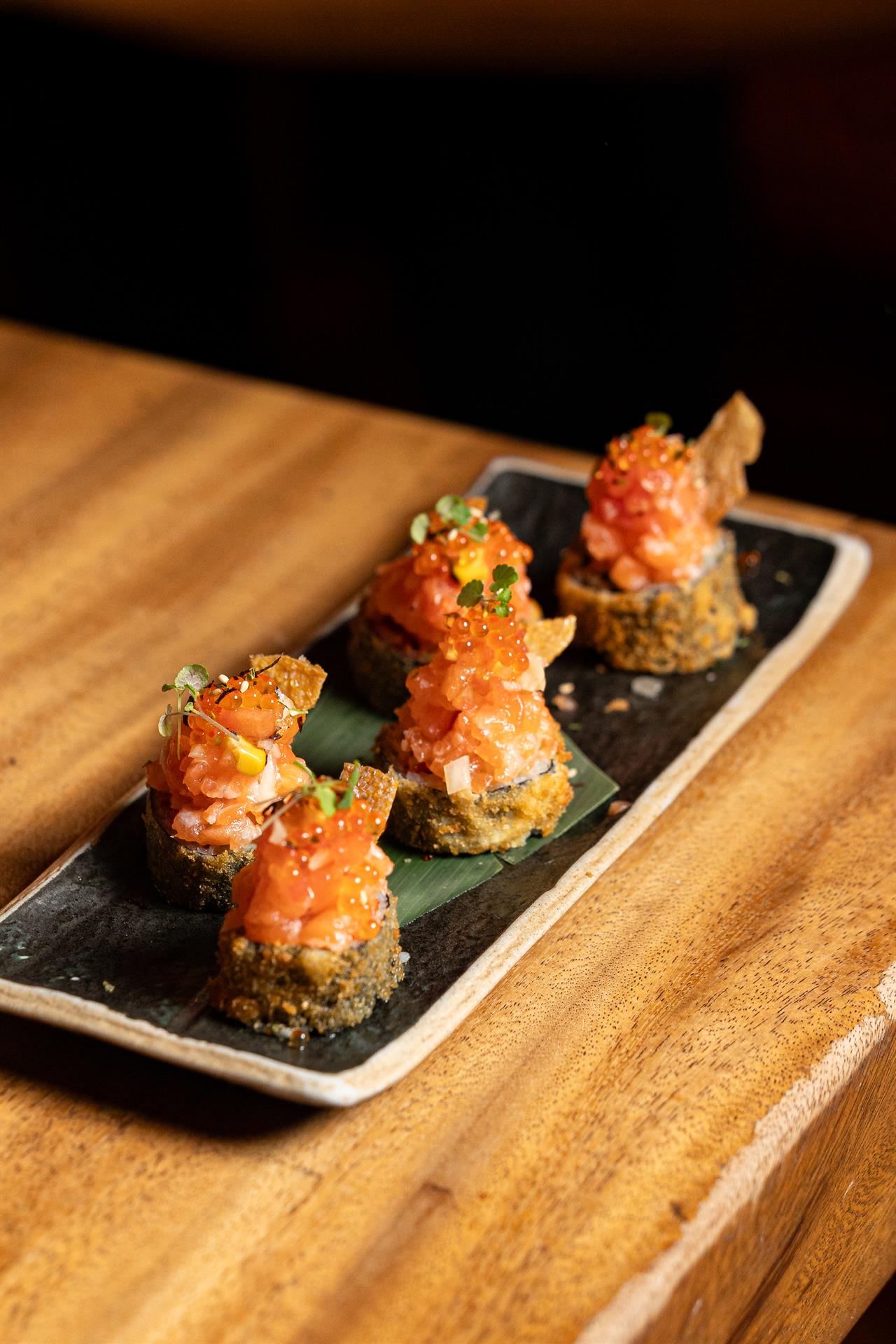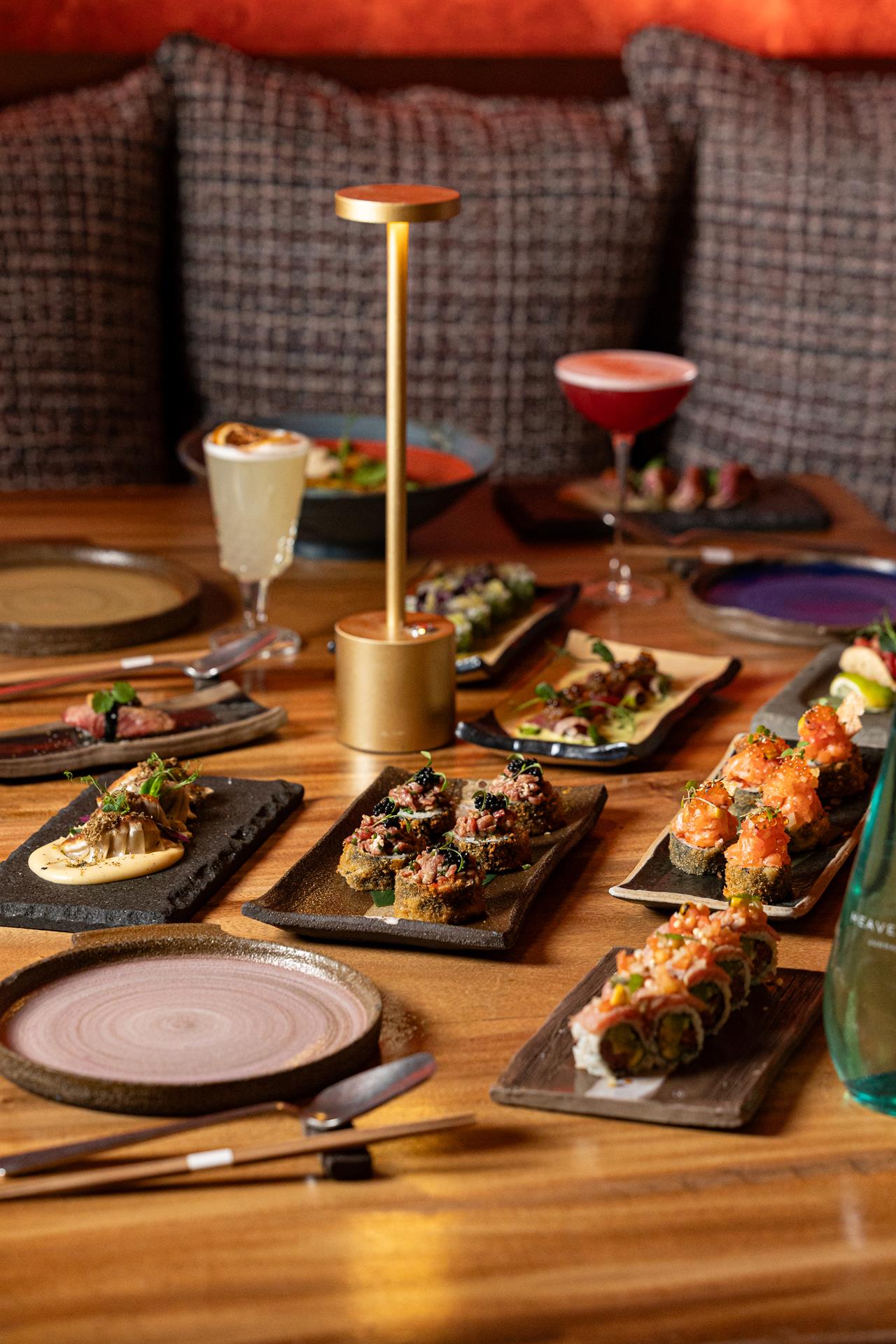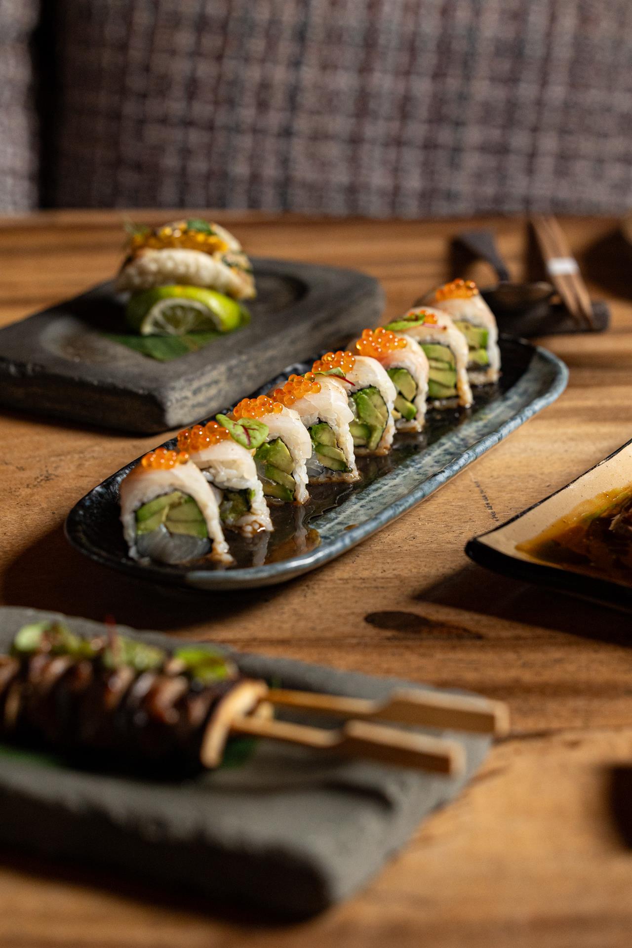 Ψητό καλαμπόκι με βούτυρο shiso, τάκος με παλαμίδα και καλαμπόκι, gyoza με γέμιση πάπιας, κρέμα παρμεζάνας και φρέσκια τρούφα, αλλά και vegan gyoza με γέμιση παντζαριού και κρέμα από μελιτζάνα και τοφού, κοτόπουλο yakitori με σουσάμι kimchi, σεβίτσε λαβράκι με τραγανό κράκερ από κινόα, σεβίτσε με τόνο, μαγιάτικο tiradito με σος από πράσινο τσίλι και μία μεγάλη ποικιλία από nigiri και sushi rolls, είναι από τις προτάσεις που φέρνουν πυροτεχνήματα στον ουρανίσκο και ευφορία στη ψυχή.