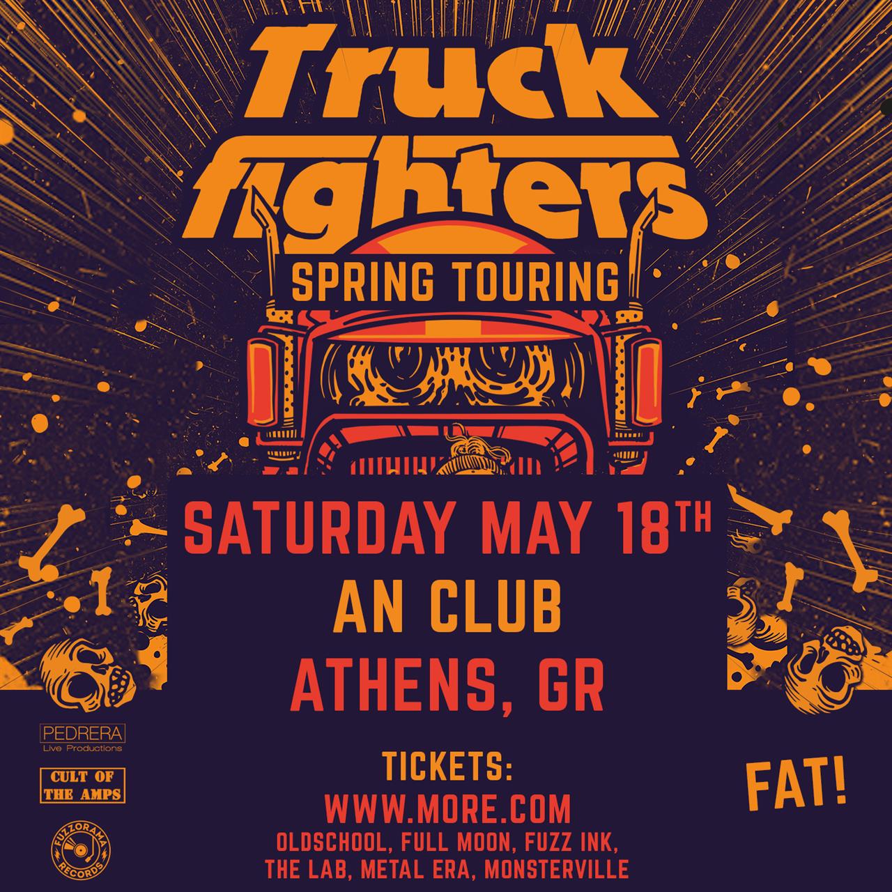 Οι Truckfighters έρχονται για την πρώτη τους headline συναυλία στην Αθήνα μετά από μια δεκαετία, στον «γνωστό τόπο του εγκλήματος», στο θρυλικό υπόγειο των Εξαρχείων, ενώ είχε μεσολαβήσει το 2016 η συμμετοχή τους στο Desertfest Athens, πλάι σε ονόματα όπως οι Red Fang και οι 1000mods.