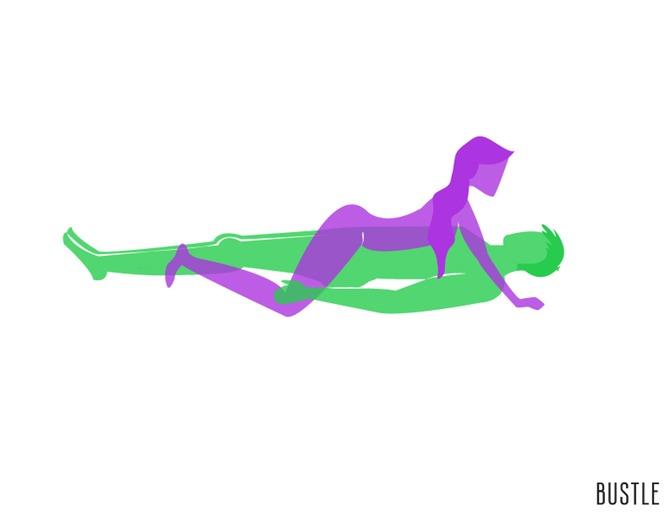 Βάζεις τον παρτενέρ να ξαπλώσει και ανεβαίνεις πάνω με τα πόδια στα πλευρά του, όμως δεν στέκεσαι όρθια. Ξαπλώνεις απάνω του και κινείσαι μπρος πίσω, αντί να ανεβοκατεβαίνεις ή για έξτρα απόλαυση με κυκλικές κινήσεις, έχοντας τον απόλυτο έλεγχο του ρυθμού και έντονη τριβή στην κλειτορίδα. Στα συν το γεγονός ότι δεν είναι αρκετά έντονη στάση για εκείνον, οπότε θα αργήσει να τελειώσει.