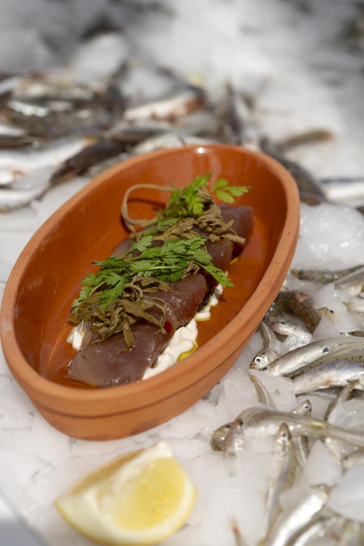 Όπως είχα γράψει πριν από λίγες μέρες που δημοσίευσα την είδηση του ανοίγματος (διαβάστε εδώ για το πώς στήθηκε, με ποιο σκεπτικό και με ποια κεντρική ιδέα), το πρώτο που κάνει εντύπωση είναι το μέρος, για τον απλό λόγο πως λίγοι γνωρίζουν ότι η κοσμοπολίτικη Γλυφάδα έχει ιχθυόσκαλα και ψαραγορά, τράτες και πάγκους με παρατεταγμένη την ημερήσια ψαριά. Ομολογώ πως δεν είχα ιδέα. Ο Αστακός, λοιπόν, είναι ακριβώς μπροστά στη θάλασσα και τα ψαροκάικα και μάλιστα διαθέτει κι ένα δικό του. Ένα το κρατούμενο.