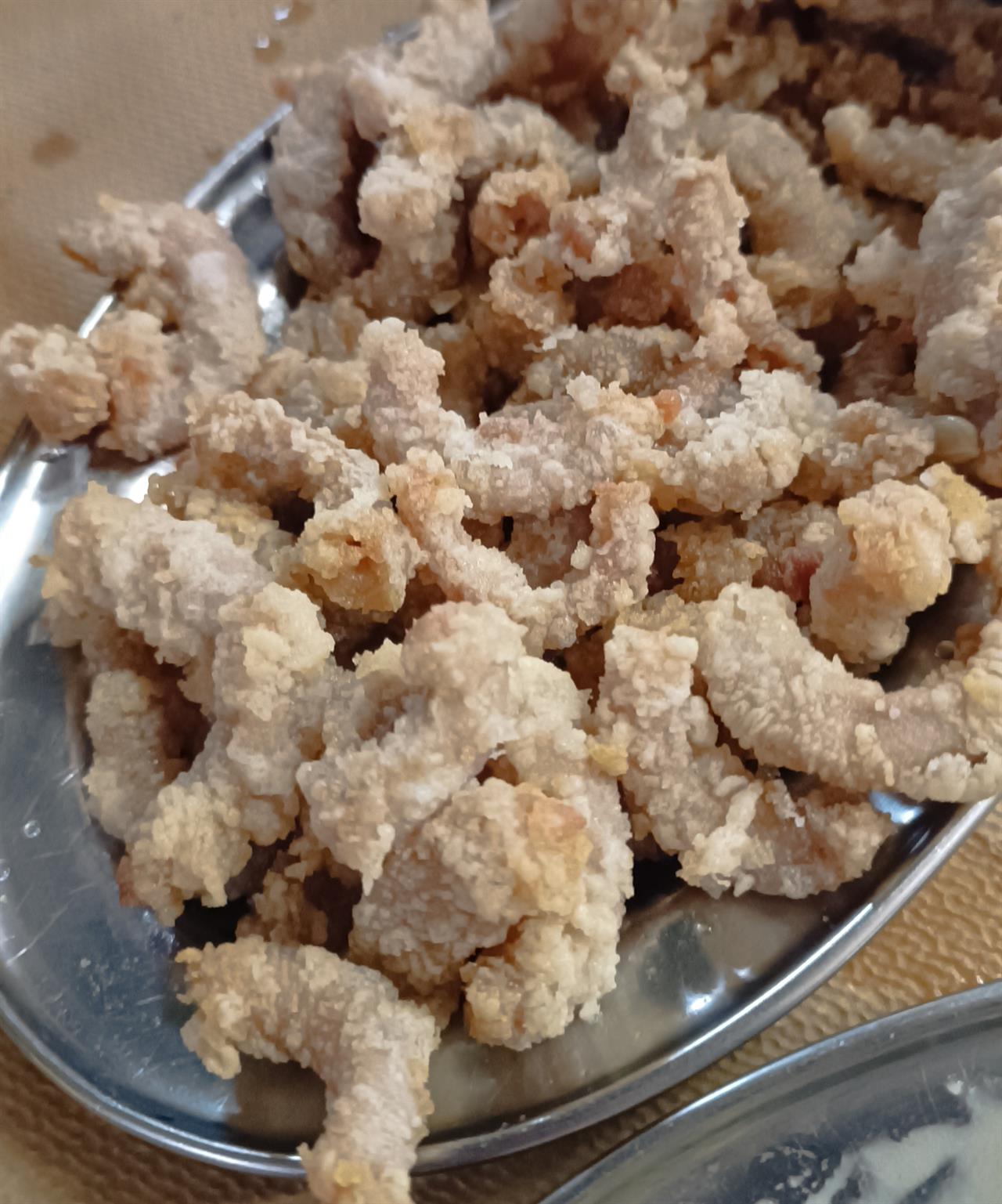 Άλλη μια ρακή γιατί σώθηκε να κάτσει λίγο το φαγητό και συνεχίζουμε με τις λοιπές προτάσεις του… σεφ, οι οποίες περιλάμβαναν γλυκάδια τηγανιτά (αμελέτητα, συκωτάκια κ.α.) σε αφράτο κουρκούτι χρυσαφένιο, γαλάντερο (το έντερο του μικρού αρνιού – λουκούμι) και μερακλίδικα γαρδουμάκια ήτοι λεπτό αρνίσιο αντεράκι τυλιγμένο σε κομμάτια κοιλιάς και φυσικά τις δεχτήκαμε μετά χαράς, γιατί ποιοι είμαστε εμείς να πούμε όχι;