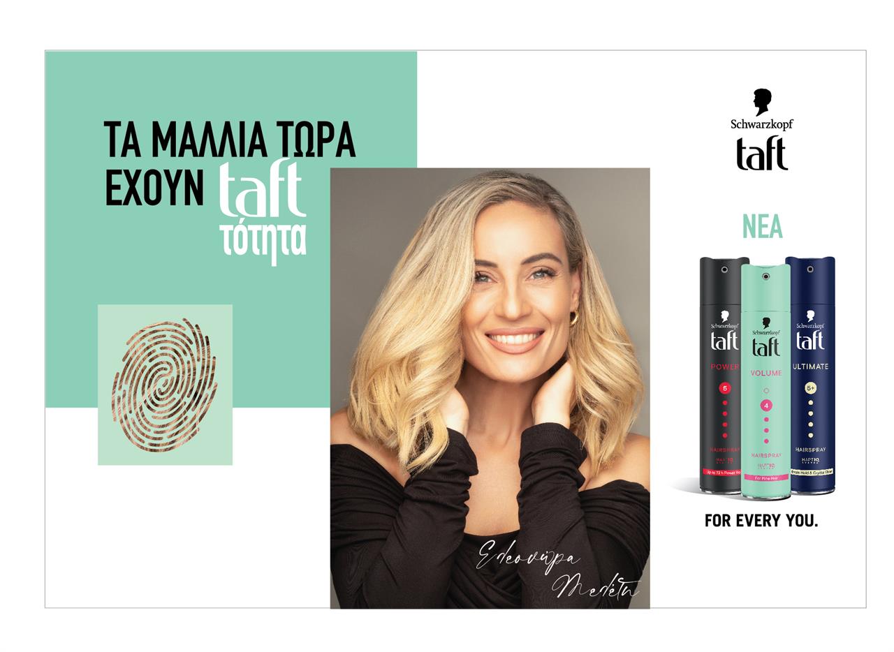 Μπροστά και πίσω από τις κάμερες, η Ελεονώρα Μελέτη εμπιστεύεται την Taft για μαλλιά λαμπερά και με ταυτότητα. Ως το νέο πρόσωπο της Taft από το Schwarzkopf, θα μοιραστεί μαζί με το κοινό της την εμπειρία της με τη νέα σειρά προϊόντων styling Τaft μαζί με εύκολα και γρήγορα hair beauty & styling tips για ξεχωριστά look με όγκο και φυσική κίνηση που κάθε μια μπορεί να κάνει μόνη στο σπίτι της! Μέσα από videos, posts & stories στους προσωπικούς της λογαριασμούς στα social media θα αναδείξει τη σημασία των προσεγμένων και εξειδικευμένων προϊόντων styling Τaft στην καθημερινότητα της.