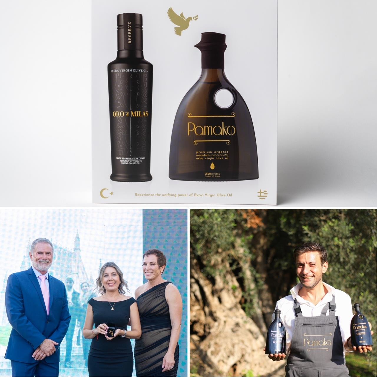 Η ελιά και το ελαιόλαδο αποτελούν σύμβολα ειρήνης και συμφιλίωσης εδώ και χιλιετίες αλλά και κοινό παρονομαστή στη γαστρονομία των λαών της Μεσογείου. Τους ιδιαίτερους αυτούς συμβολισμούς επέλεξαν να τιμήσουν δυο παραγωγοί εξαιρετικών παρθένων ελαιόλαδων από τις δύο πλευρές του Αιγαίου Πελάγους. Ο Ευτύχης Ανδρουλάκης από την Κρήτη και η Εμινέ Κόλιν από την Τουρκία ξεκίνησαν την συνεργασία τους εδώ κι έναν χρόνο προκειμένου να είναι σε θέση σήμερα να παρουσιάσουν μία συλλεκτική κασετίνα η οποία περιλαμβάνει μία φιάλη από το βιολογικό, υψηλά φαινολικό, εξαιρετικό παρθένο ελαιόλαδο Pamako (250ml) και μία φιάλη του υψηλά φαινολικού εξαιρετικού παρθένου ελαιολάδου Oro di Milas (250ml).