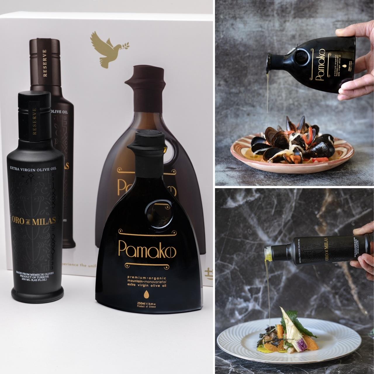 Και τα δύο εξαιρετικά παρθένα ελαιόλαδα συνταιριάζονται ιδανικά με τις γεύσεις της ελληνικής και της τουρκικής κουζίνας. Με αφορμή τη συνεργασία των δύο παραγωγών, ο πολυβραβευμένος executive chef Μιχάλης Μάρθας δημιούργησε δυο συνταγές με θαλασσινά που τόσο αγαπούν και οι δύο λαοί. Μια συνταγή για μύδια αχνιστά με λαχανικά, ούζο και εξαιρετικό παρθένο ελαιόλαδο PAMAKO που ο έντονος χαρακτήρας του απογειώνει γευστικά το πιάτο και μια συνταγή για μαριναρισμένο λαβράκι με μανταρίνι, λεμόνι, αγκινάρα και εξαιρετικό παρθένο ελαιόλαδο Oro di Milas. Το χαμηλό πικρό του σε συνδυασμό με το πολύπλοκα αρωματικό του φρουτώδες δένουν αρμονικά με το λαβράκι και χαρίζουν μια μοναδική γευστική εμπειρία.