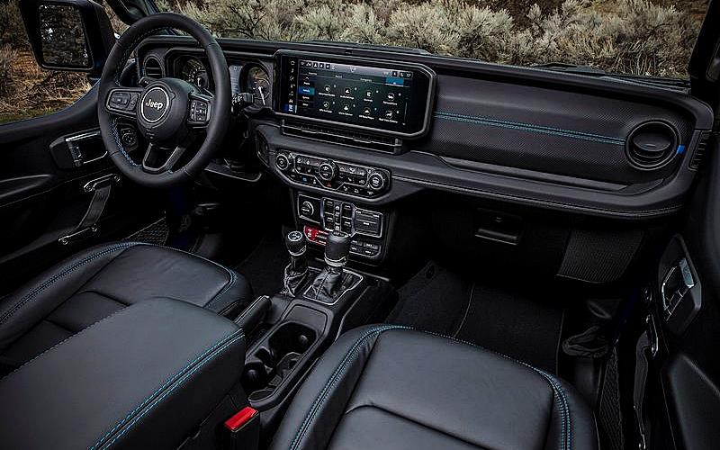 Το Plug-in Hybrid σύστημα χρησιμοποιεί μπαταρία (Li-NMC) 17 kWh που εξασφαλίζει έως 51 χλμ. αμιγούς ηλεκτρικής κίνησης, παράλληλα με ισχυρές επιδόσεις σε κάθε τερέν. Αξίζει να αναφερθεί ότι στην έκδοση Rubicon που είναι εστιασμένη στις απόλυτες εκτός δρόμου απαιτήσεις υπάρχει «πλευστός» πίσω άξονας Dana 44 HD για μέγιστη αντοχή και ότι σε κάθε Wrangler MY24 το ανεξάρτητο πλαίσιο “Body on Fame” συνδυάζεται με νέες ρυθμίσεις στην ανάρτηση, για βέλτιστη συμπεριφορά σε όλες τις συνθήκες. Ο 2.0 κινητήρας βενζίνης εξακολουθεί να αποδίδει 272 ίππους, ενώ ο ηλεκτρικός 107 kW προκειμένου να μπορεί να κινήσει αβίαστα από μόνος του το αυτοκίνητο ακόμα και εκτός δρόμου. Το κιβώτιο ταχυτήτων είναι αυτόματο με μετατροπέα ροπής και 8 σχέσεις, ενώ συνεργάζεται με μηχανικό σύστημα τετρακίνησης και επιπλέον κιβώτιο υποπολλαπλασιασμού για τις πλέον δύσκολες εκτός δρόμου συνθήκες.