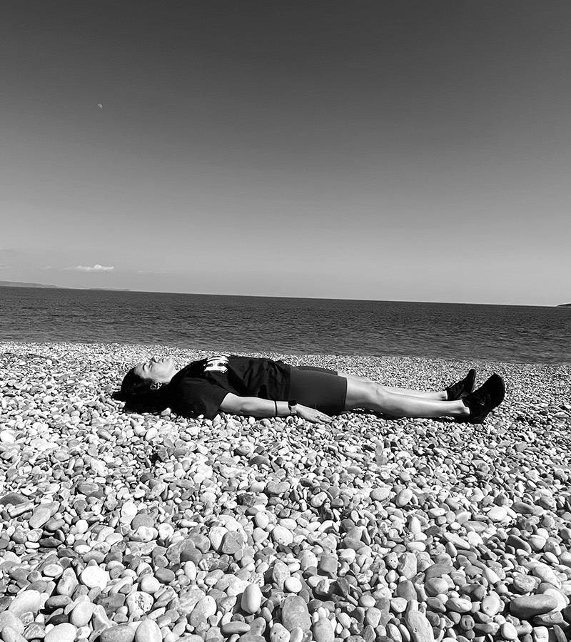 Ξάπλωσε σε ύπτια κατάκλιση και φέρε τα χέρια σου δεξιά και αριστερά από τις πλευρές σου και άσε τα πόδια να βυθιστούν στο πάτωμα. Χαλάρωσε το μέτωπο και απόλαυσε για όσο χρόνο θες.