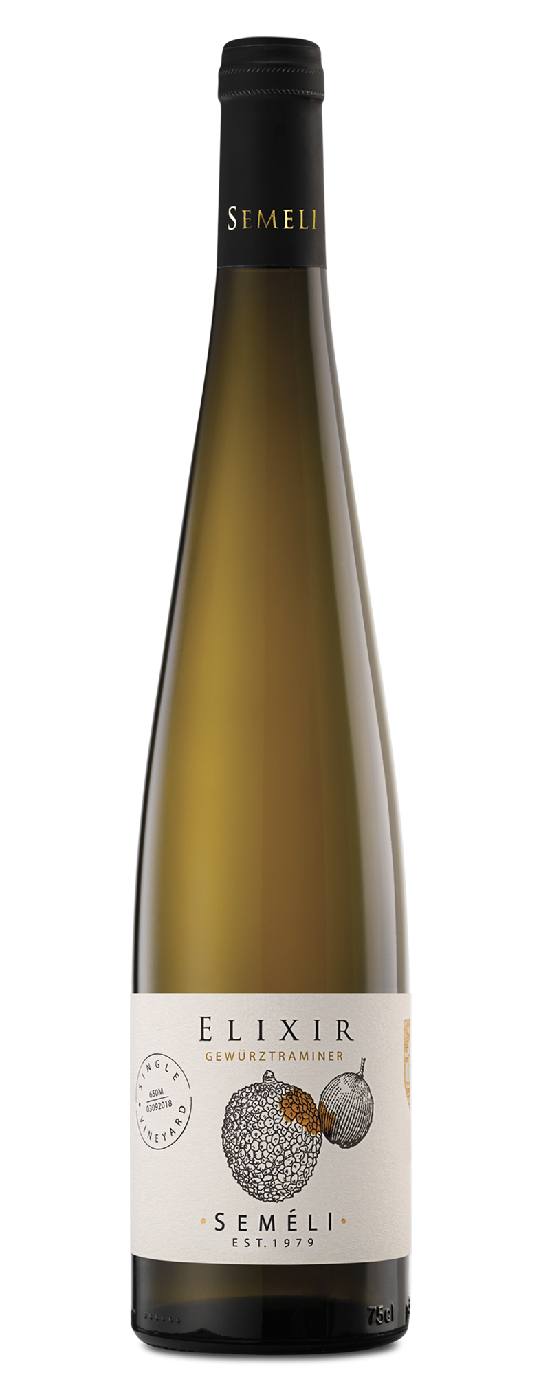 Το Elixir του Kτήματος Σεμέλη είναι ένας λευκός ξηρός οίνος (ποικιλίας Gewürztraminer) με κρυστάλλινο κιτρινόξανθο χρώμα με πράσινες αποχρώσεις. Η μύτη του είναι ελκυστική και σαγηνευτική με ώριμα λευκόσαρκα φρούτα όπως αχλάδια «Comise» και εξωτικά φρούτα σε ανθώδη φόντο, με τη βιολέτα και το γιασεμί να κάνουν έντονα την εμφάνισή τους.
