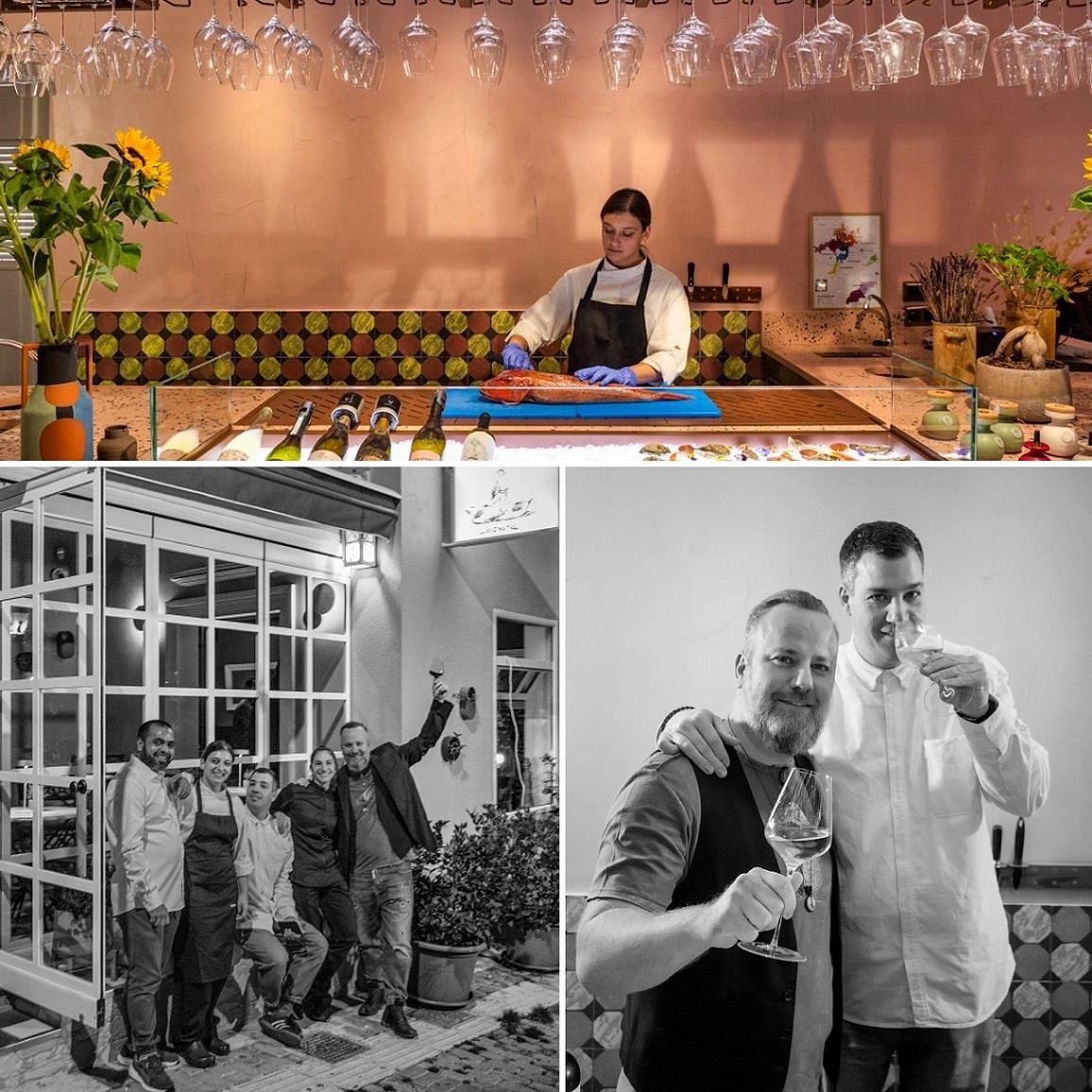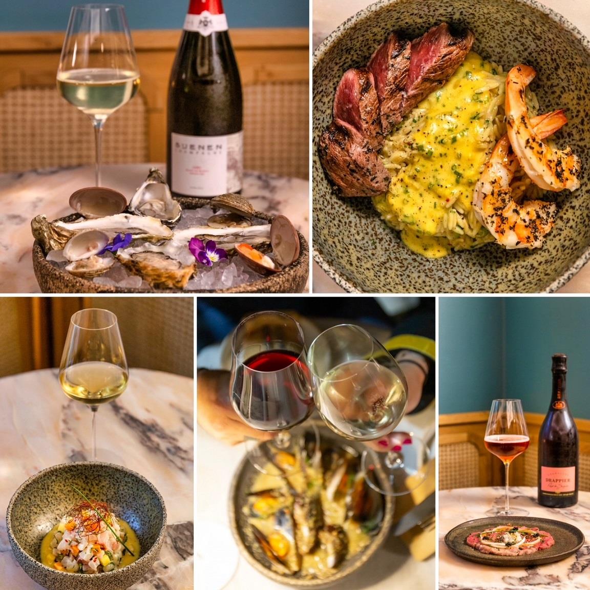 Σαμπάνια, άλλοι αφρώδεις οίνοι και κρασιά από όλον τον κόσμο, με έμφαση σε αυτά ήπιας παρέμβασης, πολλά σε ποτήρι, βρίσκονται εκεί με μοναδικό σκοπό να δώσουν χαρά και να πάρουν από πάνω μας το άγχος και την κούραση της κάθε μέρας. Το φαγητό είναι φρέσκο, πολύχρωμο και πολύ νόστιμο και ο κατάλογος είναι όσο μου αρέσει περιεκτικός και όπως πρέπει εποχικός. Τα στρείδια, που είναι η μεγάλη μου αγάπη, κάνουν την ωραιότερη παρέα με τις φυσαλίδες και για μένα θα μπορούσαν άνετα να είναι το μόνο που θα γευόμουν. Παρόλα αυτά, και όλα τα υπόλοιπα πιάτα του μενού χαρακτηρίζονται από την ίδια φρεσκάδα και νοστιμιά, με υλικά πρώτης τάξεως, αρμονικούς και, συγχρόνως, ισορροπημένους συνδυασμούς. Πρωταγωνιστεί η θάλασσα χωρίς να λείπει και η στεριά, στις σαλάτες, τα ωμά, τα αχνιστά, τα μαγειρεμένα. Μια ιδιαίτερα εύγευστη surf n’turf σύνθεση είναι η μοσχαρίσια πικάνια με τις καπνιστές γαρίδες που συνοδεύεται από κριθαράκι μαγειρεμένο με σαμπάνια και μυρωδάτο βούτυρο. Ακόμα και η μους λευκής σοκολάτας, που καθόλου δεν προτιμώ, είναι φίνα, δροσερή κι ανάλαφρη από το mango και το passion fruit.