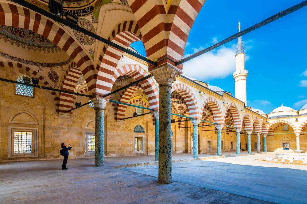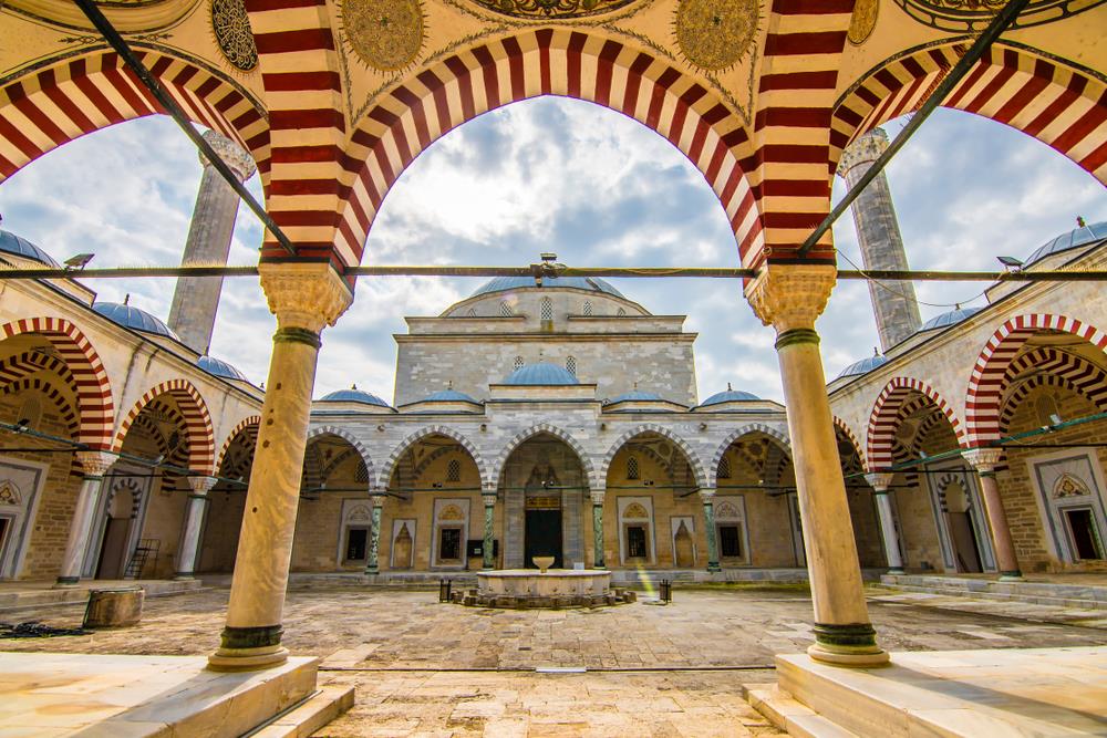 Δικό του έργο είναι το ωραιότερο ίσως από τα τζαμιά της Κωνσταντινούπολης, το Σουλεϊμανιγιέ, αν όμως κατάφερνες να τον βρεις με μια χρονομηχανή και τον ρωτούσες, θα σου έλεγε πως το επιστέγασμα ολόκληρης της καριέρας του βρίσκεται εδώ, στην Αδριανούπολη, και λέγεται Σελιμιγιέ. Καθώς πλησιάζεις οδηγώντας στην πόλη, εύκολα καταλαβαίνεις το γιατί: Με τα 71 μέτρα του ύψους τους, οι μιναρέδες του διακρίνονται από χιλιόμετρα μακριά να στεφανώνουν την Αδριανούπολη σαν πύργοι ενός παραμυθένιου κάστρου. Πιθανότατα ένα από τα εντυπωσιακότερα κτίσματα που θα δεις στη ζωή σου, το Σελιμιγιέ χτίστηκε το 1575 και λειτουργεί κανονικά, πράγμα που σημαίνει πως είναι επισκέψιμο χωρίς εισιτήριο. Οι κοκκινόλευκες αψίδες που στολίζουν την αυλή και το εσωτερικό του είναι ίσως η πιο χαρακτηριστικά αδριανουπολίτικη λεπτομέρεια στην αρχιτεκτονική του (θα τις δεις και σε πολλά ακόμα κτίρια της πόλης) ενώ οι διαδοχικοί τρούλοι που σχηματίζουν πυργίσκους γύρω από τον μεγάλο κεντρικό του τρούλο κάνουν ακόμα επιβλητικότερη την εξωτερική του εικόνα.