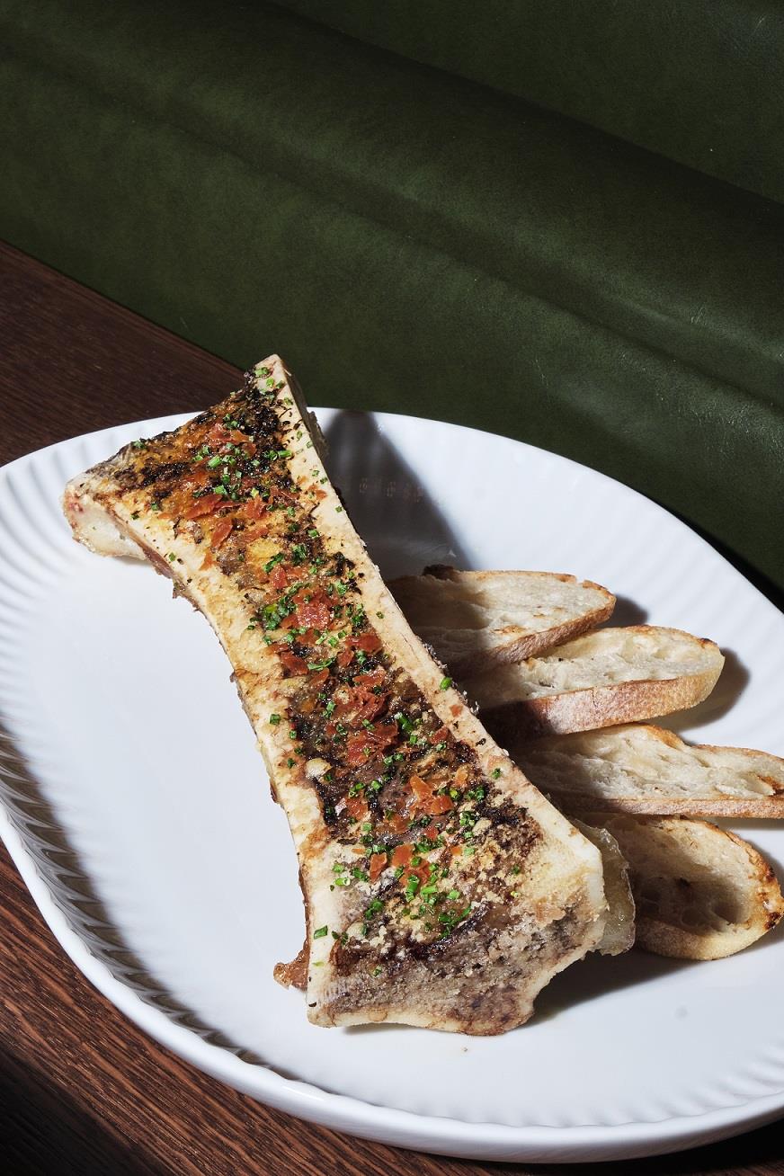 Το έξοχο βοδινό κόκκαλο (€ 10) με καψαλισμένο μεδούλι αρωματισμένο με μαντζουράνα έρχεται μαζί με λεπτές φέτες τοσταρισμένης μπαγκέτας και σε μια μπουκιά γεύεσαι τη νοστιμιά του κόσμου. Όπως είχε δηλώσει ο Anthony Bourdain, αυτό και μόνο αυτό θα ήθελε, αν μπορούσε να διαλέξει, να είναι το τελευταίο του γεύμα πάνω στη γη‧ το ίδιο κι εγώ. Η αστεράτη Caesar’s salad (€ 18) στην αυθεντική της εκτέλεση, ο αστακός (€ 130/κιλό) με το σκορδάτο βούτυρο.
