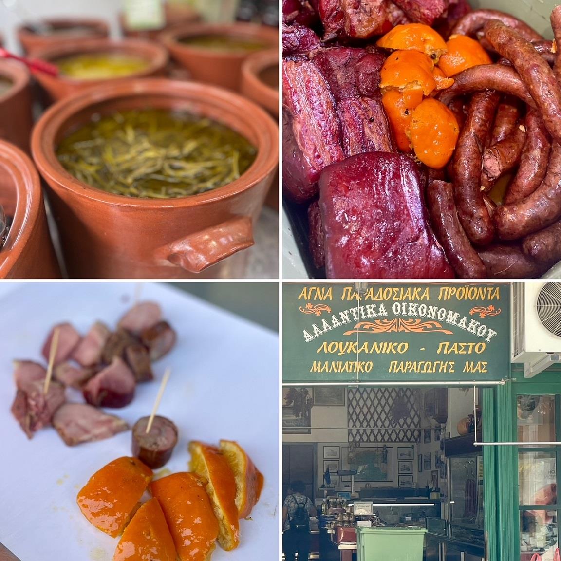 Μπήκα στο μαγαζί του Οικονομάκου στο Ιστορικό Κέντρο της Καλαμάτας και δοκίμασα το απίθανα νόστιμο, διάσημο παστό του (σύγκλινο) και τα λουκάνικα, και τα δύο να μοσχοβολάνε πορτοκάλι, τις καταπληκτικές ελιές και τα τουρσιά, που μας φίλεψαν οι χαμογελαστοί άνθρωποι της οικογένειας με πολύχρονη παράδοση και επιμονή στο άριστο προϊόν.