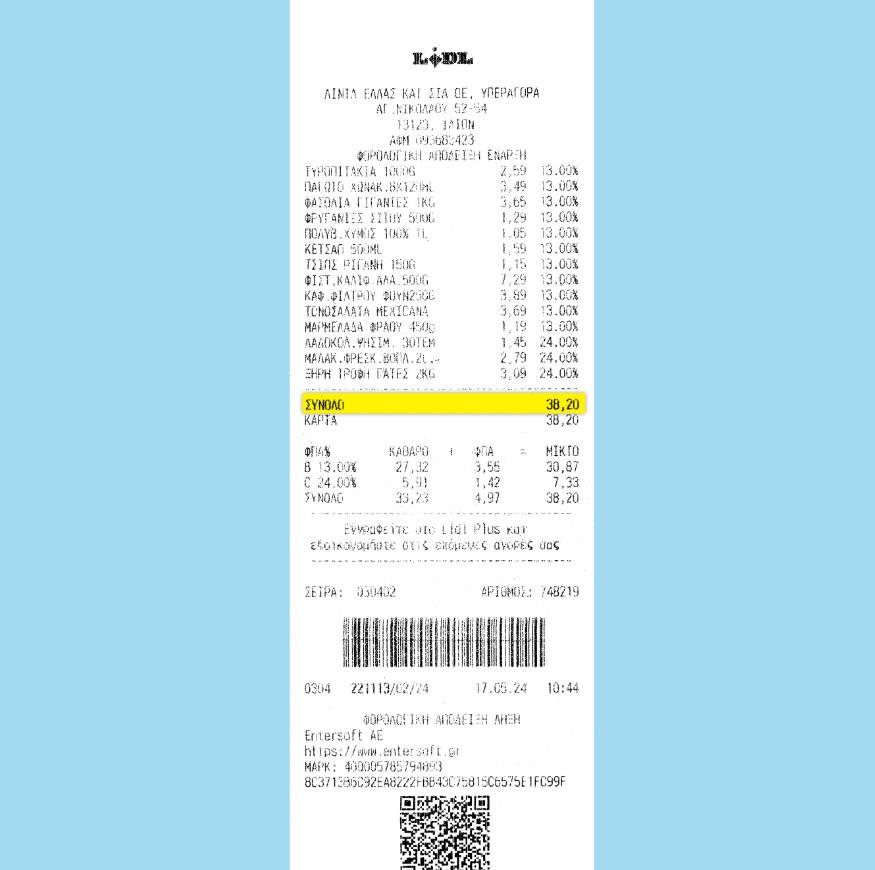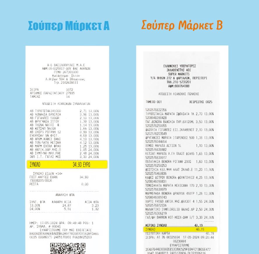 Εκτός από τον συγκεκριμένο πίνακα τα Lidl δημοσίευσαν και τις αποδείξεις αγοράς των προϊόντων από τα δύο ανταγωνιστικά σούπερ μάρκετ για να αποδείξουν ότι οι τιμές τους είναι πιο οικονομικές.