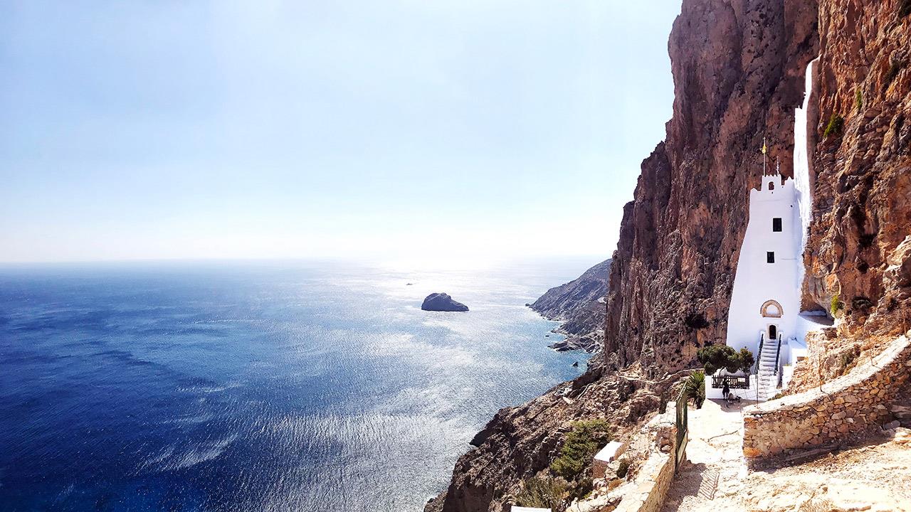 Σαν βγεις στον πηγαιμό για την Αμοργό να θυμάσαι ότι εκεί θα συναντήσεις δαντελωτές ακρογιαλιές, τα εκθαμβωτικά γαλάζια νερά της και την πιο όμορφη χώρα του Αιγαίου.