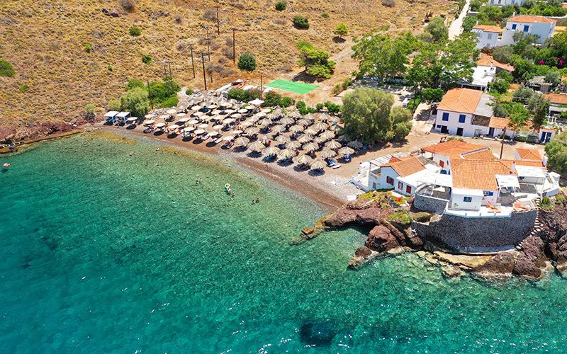 Σημείωσε πως η (εύκολη) πρόσβαση στις παραλίες του νησιού γίνεται με θαλάσσιο ταξί (από 10€ η διαδρομή μετ’ επιστροφής), αν όμως θες να γλιτώσεις κατιτίς από το μπάτζετ σου, τα Καμίνια είναι κοντά στην πόλη (ένα 15’ περπάτημα από παραλιακό μονοπάτι), ενώ ο Βλυχός απέχει περί τα 30€ λεπτά περπάτημα.