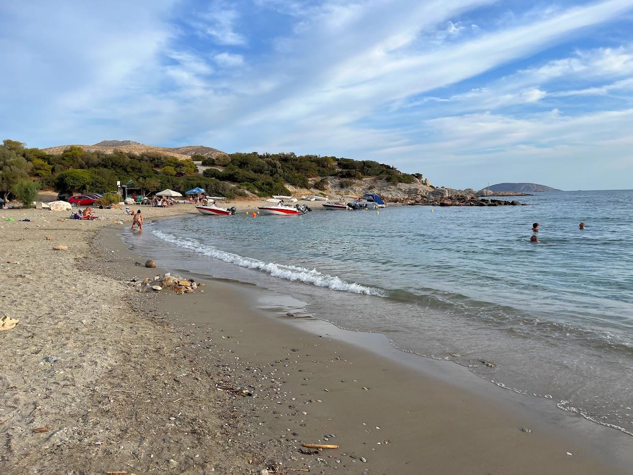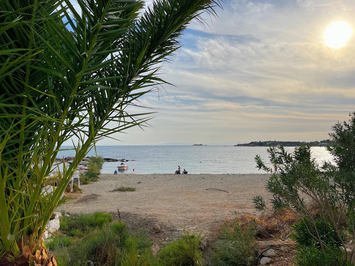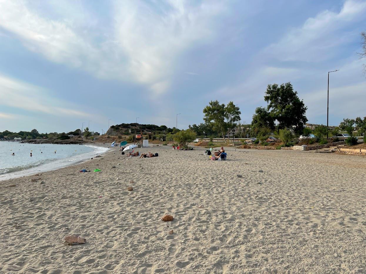 Η παραλία δεν είναι το ίδιο δελεαστική για βουτιές όσο η διπλανή της, έχει λίγες πέτρες μέσα στο νερό και χαλικάκι έξω, είναι όμως ωραίο τοπίο για παραθαλάσσιες βόλτες ή/ και μπύρες στην ακροθαλασσιά, αν θέλεις να ρομαντζάρεις με το έτερό σου ήμισυ θα είστε σχεδόν μόνοι σας. Ευκάλυπτοι και αρμυρίκια παρέχουν την απαραίτητη σκιά στο πίσω μέρος της παραλίας, και μια καντίνα-βανάκι σταθμευμένο στο δρόμο πάνω από την παραλία φροντίζει για τα απαραίτητα καφεδάκια, μπύρες και τσιμπολογήματα.