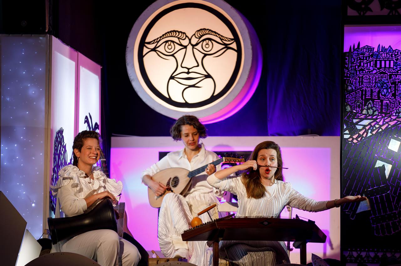 Σε αυτό το συναρπαστικό ταξίδι στο σταυροδρόμι Δύσης και Ανατολής, με πυξίδα τη μουσική, η Αρετή Κετιμέ με την υπέροχη φωνή και το σαντούρι της συμπορεύεται με τη σοπράνο Αγγελική-Ζωή Καραγκούνη, σε μια ετερόκλητη και ανατρεπτική μουσική σύμπραξη! Μαζί τους, οι μουσικοί Χαρά Τσαλπαρά (ακορντεόν, φωνή) και Θεοδώρα Αθανασίου (κιθάρα, λάφτα, σάζι, φωνή) καθώς και ο σκιοπαίκτης Νικόλας Τζιβελέκης.