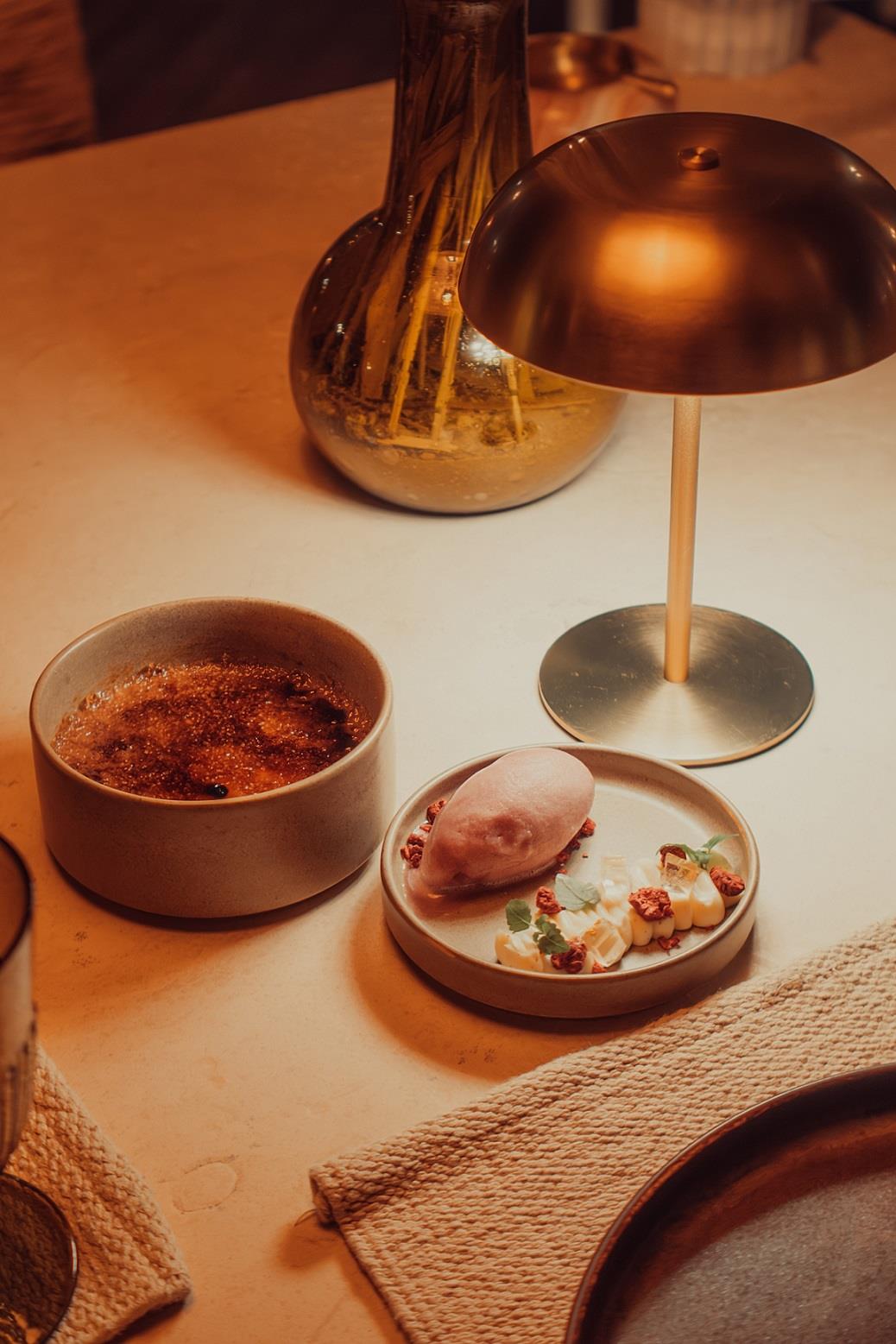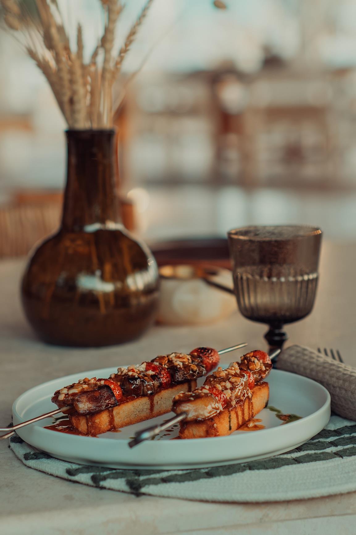 Όπως είναι φυσικό, τα πιάτα με κρέας είναι γευστικά πιο πλούσια, πιο comfort, θα έλεγα. Τα νόστιμα αργοψημένα «τραβηχτά» μοσχαρίσια μάγουλα (pulled beef cheeks) συνοδεύονται από λαζάνια άριστα al dente και την πληθωρική σάλτσα του κρέατος που έχει γλασαριστεί με ανατολίτικο πετιμέζι ροδιού-τριαντάφυλλου (€ 29). Το δεύτερο πιάτο με τρυφερό μοσχαρίσιο φιλέτο Chateaubriand (€ 110 που μοιράζονται τουλάχιστον 2 άτομα) λιώνει στο στόμα, συνοδεύεται από βελούδινο πουρέ πατάτας και η σάλτσα του κρέατος παίρνει βαθιά νοστιμιά και άρωμα, από κρασί που έχει παλαιώσει με τη μέθοδο solera.
