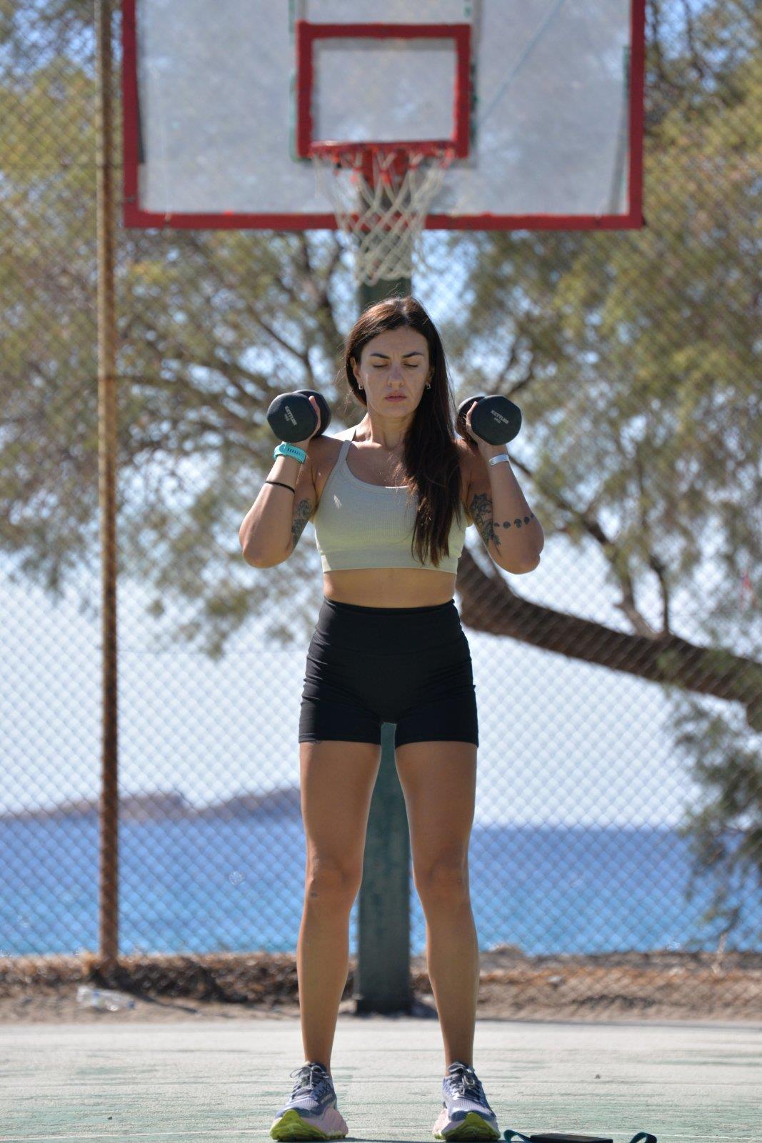 Tip: Κράτησε το κεφάλι ψηλά και τα μάτια σου να κοιτάζουν προς τα εμπρός καθώς ανεβάζεις τους αλτήρες, αυτό θα μειώσει την πίεση στον αυχένα και το λαιμό.