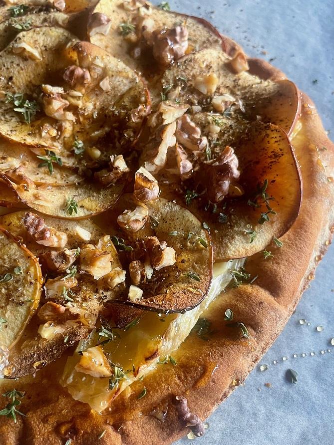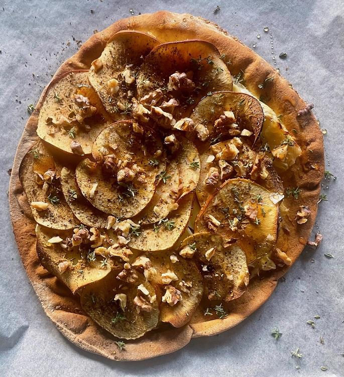 Το ζυμάρι της πίτσας είναι επιστήμη κανονική και απαιτεί εμπειρία και δεξιοτεχνία, ιδιότητες που ομολογώ πως δεν κατέχω. Ξυλόφουρνο, εννοείται πως δεν διαθέτω, ούτε όμως και την ειδική πέτρα για το ψήσιμο της πίτσας στον φούρνο. Πέρα, όμως, από αυτά, το ζητούμενο ήταν να φτιάξω ένα σνακ εύκολο, γρήγορο και λιγότερο παχυντικό από μία κλασική πίτσα. Ήθελα, συν τοις άλλοις, οι «πίτσες» μου να είναι κάπως φθινοπωρινές, με υλικά που μπορούν να εναλλάσσονται, να πηδάνε από το ένα είδος στο άλλο και να μην έχουν σάλτσα ντομάτας. Το μόνο κοινό τους συστατικό είναι η ζύμη που σ’ αυτή την περίπτωση είναι η αραβική πίτα.