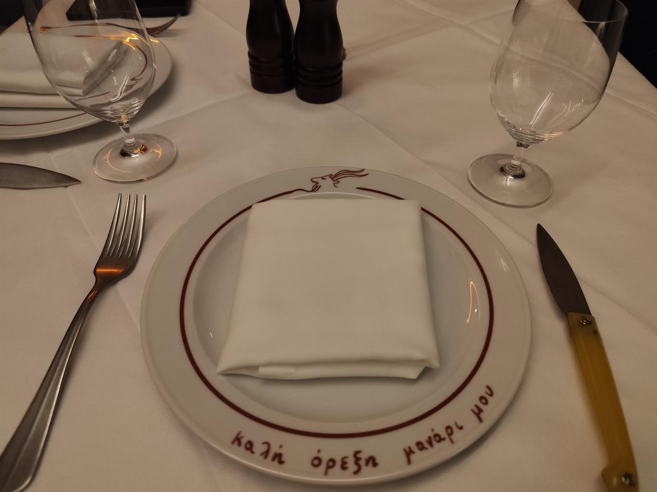 Πήραμε θέση στο στρωμένο τραπεζάκι μας που φώτιζε έξτρα ένα λεπτό κεράκι και φωτογραφίσαμε το σερβίτσιο που μας ευχόταν: «καλή όρεξη μανάρι μου»! Ξεκινήσαμε με ένα κρασάκι στηρίζοντας τις επιλογές του ελληνικού αμπελώνα που υπήρχαν σε πληθώρα στoν οινοκατάλογο κι εν μέσω τσουγκρισμάτων κατέφθασε το ψωμάκι με λαδορίγανη στα κάρβουνα (2,5€) ως είθισται σε κάθε μερακλήδικη ταβέρνα.