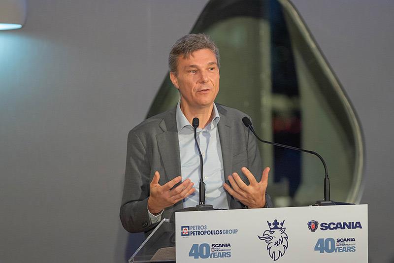 «H Scania όμως προχωράει στο μέλλον, έχει επενδύσει και σε ηλεκτρικά οχήματα και σε υβριδικά οχήματα και δοκιμάζει και φορτηγά αυτόνομης οδήγησης, τεχνολογίες που θα έρθουν στο κοντινό μέλλον. Τις περιμένουμε με ανυπομονησία. Στην εταιρεία μας έχουμε τη βούληση και τις δυνατότητες να τις εφαρμόσουμε στην Ελλάδα στο πλαίσιο της αυξανόμενης ανάγκης για βιωσιμότητα».