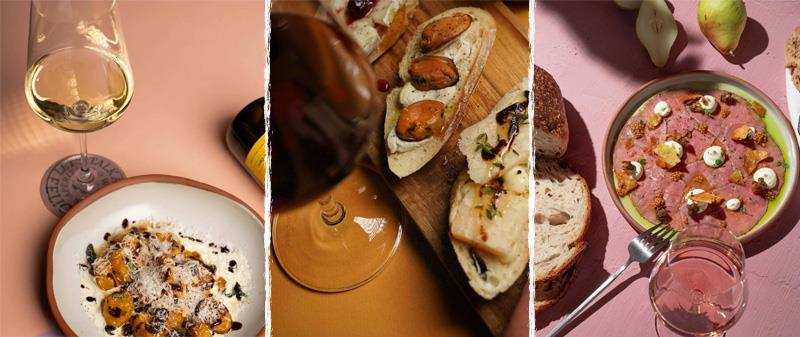 Και τι τρώμε εδώ; Αναλόγως την διάθεση και την πείνα, έχεις να διαλέξεις ανάμεσα σε συνοδευτικά για το κρασί σου, ή κανονικότατο γεύμα. Στην πρώτη περίπτωση, θα βρεις ωραία την κλασική επιλογή των πλατό τυριών και αλλαντικών, και ακόμα ωραιότερα τα τσικέτι (chiccheti ιταλιστί) που μοιάζουν σαν μεγαλούτσικες μπρουσκέτες, γαρνιρισμένες με όμορφα πραγματάκια: Σκέψου σαλάμι αέρος, κατίκι Δομοκού και πράσινη πιπεριά, ή καπνιστό χοιρινό Μελιγαλά, γραβιέρα Μεσσηνίας και μαρμελάδα εποχής, ή χειροποίητη κρέμα μελιτζάνας και φουντούκι. Τιμές, στα 3€ το ένα, ή 15€ για έναν συνδυασμό με 6 διαφορετικά.