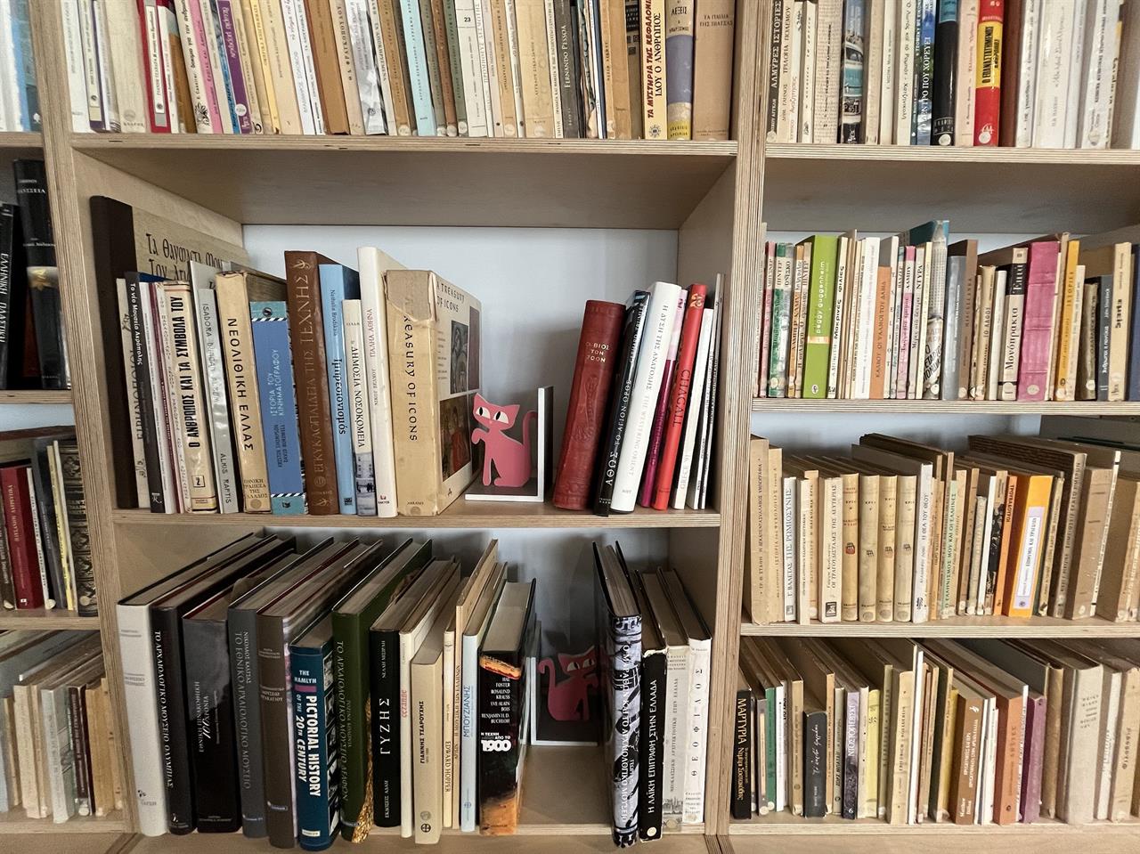 Κοιτάζω τα ράφια και ενθουσιάζομαι σαν πιτσιρίκι σε γλυκοπωλείο με κάθε δεύτερο τίτλο: Το Φθινόπωρο στο Πεκίνο του Μπορίς Βιάν, στην παλιά έκδοση του Εξάντα, κάνει παρέα με μια Οδύσσεια μεταφρασμένη στα Ποντιακά. Τα Περιηγητικά του Παυσανία (πατέρα και ανεπίσημα ανακηρυγμένου προστάτη όλων των ταξιδιωτικών συντακτών που ακολούθησαν) σε μια εντυπωσιακή έκδοση βραβευμένη από την Ακαδημία Αθηνών βρίσκονται ένα ράφι κάτω από το 4321 του Πωλ Ώστερ. Ο Ερωτισμός του Ζωρζ Μπατάιγ ακουμπά πάνω στις Σημειώσεις από το Υπόγειο του Ντοστογιέφσκι. Και στο ράφι που ανακαλύπτω τον Αναγνωστάκη αράζουν επίσης ο Μπόρχες με τον Λόρκα και τον Σεφέρη.
