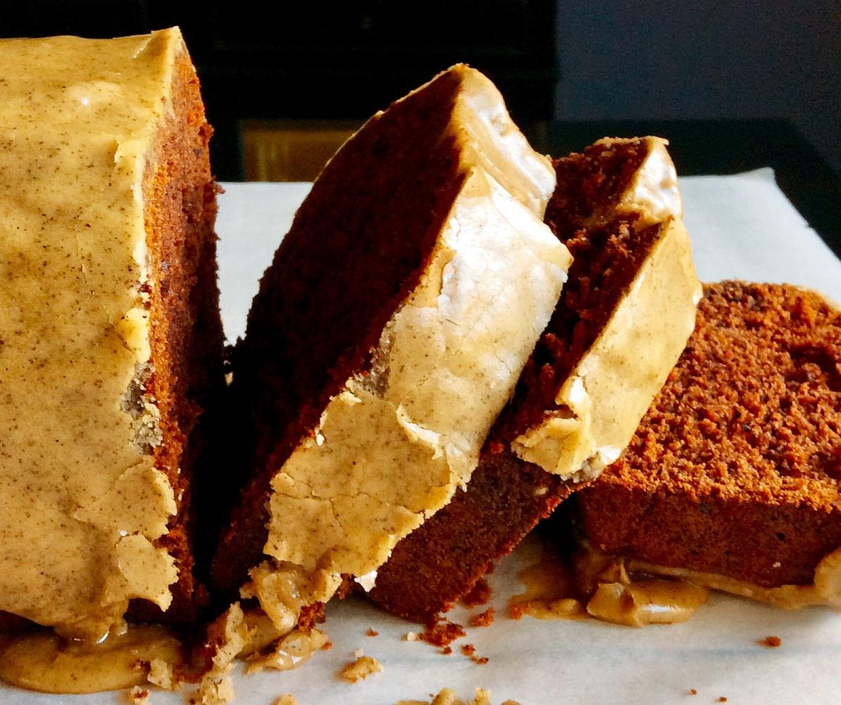 Τέλος, ετοιμάζουμε την επικάλυψη, χτυπώντας στο μίξερ για αρκετή ώρα με το σύρμα ¾ φλ. τσ. μαλακωμένο βούτυρο με 1 συσκευασία των 220 γρ. mascarpone και το υπόλοιπο μίγμα των μπαχαρικών. Μόλις το μίγμα βουτύρου-τυριού αφρατέψει, προσθέτουμε σταδιακά 1 ½ - 2 φλ. τσ. ζάχαρη άχνη (και πάλι, η προσωπική μου προτίμηση είναι για όχι πολύ γλυκιά επικάλυψη, γι’ αυτό έβαλα μόνο την μικρότερη προτεινόμενη ποσότητα. Καλό θα είναι να δοκιμάζετε και να σταματήσετε να προσθέτετε ζάχαρη όταν το αποτέλεσμα σας ικανοποιήσει). Με μία σπάτουλα σκεπάζουμε το cake με την επικάλυψη και με την πλάτη ενός κουταλιού σχηματίζουμε κυκλικά «βουναλάκια». Λόγω της βουτυρένιας επικάλυψης, το διατηρούμε στο ψυγείο και φέρνουμε σε θερμοκρασία δωματίου όσα κομμάτια θα φάμε κάθε φορά. Μπορούμε επίσης να του δώσουμε ένα πολύ ελαφρύ ζέσταμα στον φούρνο μικροκυμάτων της τάξεως των 10 δευτερολέπτων.