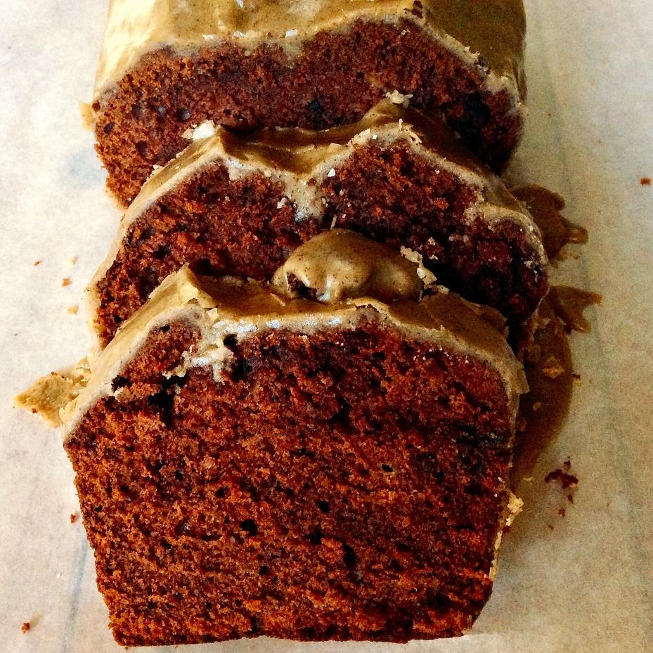 Χτυπάμε στο μίξερ με το φτερό 115 γρ. μαλακωμένο βούτυρο με ½ φλ. τσ. κρυσταλλική ζάχαρη και 1/3 φλ. τσ. σκούρα καφέ ζάχαρη για αρκετή ώρα, μέχρι να αφρατέψει το μίγμα. Κατά διαστήματα σταματάμε το μηχάνημα και σπρώχνουμε το μίγμα στο μέσον του κάδου. Προσθέτουμε ένα ένα 2 αυγά και χτυπάμε μέχρι να ενσωματωθούν. Κατόπιν προσθέτουμε 3 μεγάλες ώριμες μπανάνες που τις έχουμε λιώσει με ένα πιρούνι (βλ. tips) και δίνουμε 2-3 γύρους ακόμη, ίσα ίσα να ομογενοποιηθεί το μίγμα. Στερεώνουμε μια ψιλή σήτα πάνω στον κάδο του μίξερ και βάζουμε μέσα 2 φλ. τσ. αλεύρι για όλες τις χρήσεις, ¼ φλ. τσ. σκόνη κακάο, 1 κ.γλ. μαγειρική σόδα και μία καλή πρέζα αλάτι. Ανασηκώνουμε τη σήτα και την κουνάμε πάνω από τον κάδο, κοσκινίζοντας και προσθέτοντας ταυτοχρόνως τα στερεά υλικά μέσα στο αρχικό μίγμα. Χτυπάμε στη χαμηλή ταχύτητα μέχρι να ομογενοποιηθεί το μίγμα (βλ. tips). Βάζουμε τη ζύμη σε βουτυρωμένη και αλευρωμένη παραλληλόγραμμη φόρμα μήκους περίπου 25 εκ. και ψήνουμε σε προθερμασμένο φούρνο στη λειτουργία του αέρα στους 175ο C για περίπου 50΄-55΄. Το μαχαίρι που θα βυθίσουμε για να ελέγξουμε το ψήσιμο θα είναι στεγνό μεν, με λίγη υγρασία δε. Ξεφουρνίζουμε το κέικ, το αφήνουμε μέσα στη φόρμα για περίπου 10΄, το ξεφορμάρουμε και το αφήνουμε να κρυώσει εντελώς πάνω σε σχάρα. Ετοιμάζουμε το γλάσο του καφέ ανακατεύοντας 1 ½ φλ. τσ. ζάχαρη άχνη με 5 κ.σ. δυνατό καφέ φίλτρου και, προαιρετικά, εάν αγαπάμε πολύ τον καφέ, προσθέτουμε 1 γεμάτο κ.γλ. σκόνη καφέ espresso. Εάν το κέικ προορίζεται και για παιδιά, φτιάχνουμε γλάσο με κακάο, ανακατεύοντας 1 φλ. τσ. ζάχαρη άχνη με 4. κ.σ. σκόνη κακάο και 5 κ.σ. νερό ή γάλα. Απλώνουμε το γλάσο πάνω στο cake σταδιακά, για να το αφήσουμε να «τρέξει» και στα πλάγια. Κάνουμε λίγη υπομονή ακόμη πριν κόψουμε την πρώτη φέτα, μέχρι να στεγνώσει εντελώς το γλάσο (20΄ οπωσδήποτε).