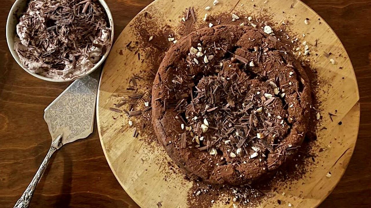ΣΟΚΟΛΑΤΕΝΙΟ ΚΕΙΚ ΧΩΡΙΣ ΑΛΕΥΡΙ ΜΕ ΦΟΥΝΤΟΥΚΙΑ & ΣΑΝΤΙΓΙ ΜΕ ΚΑΚΑΟ