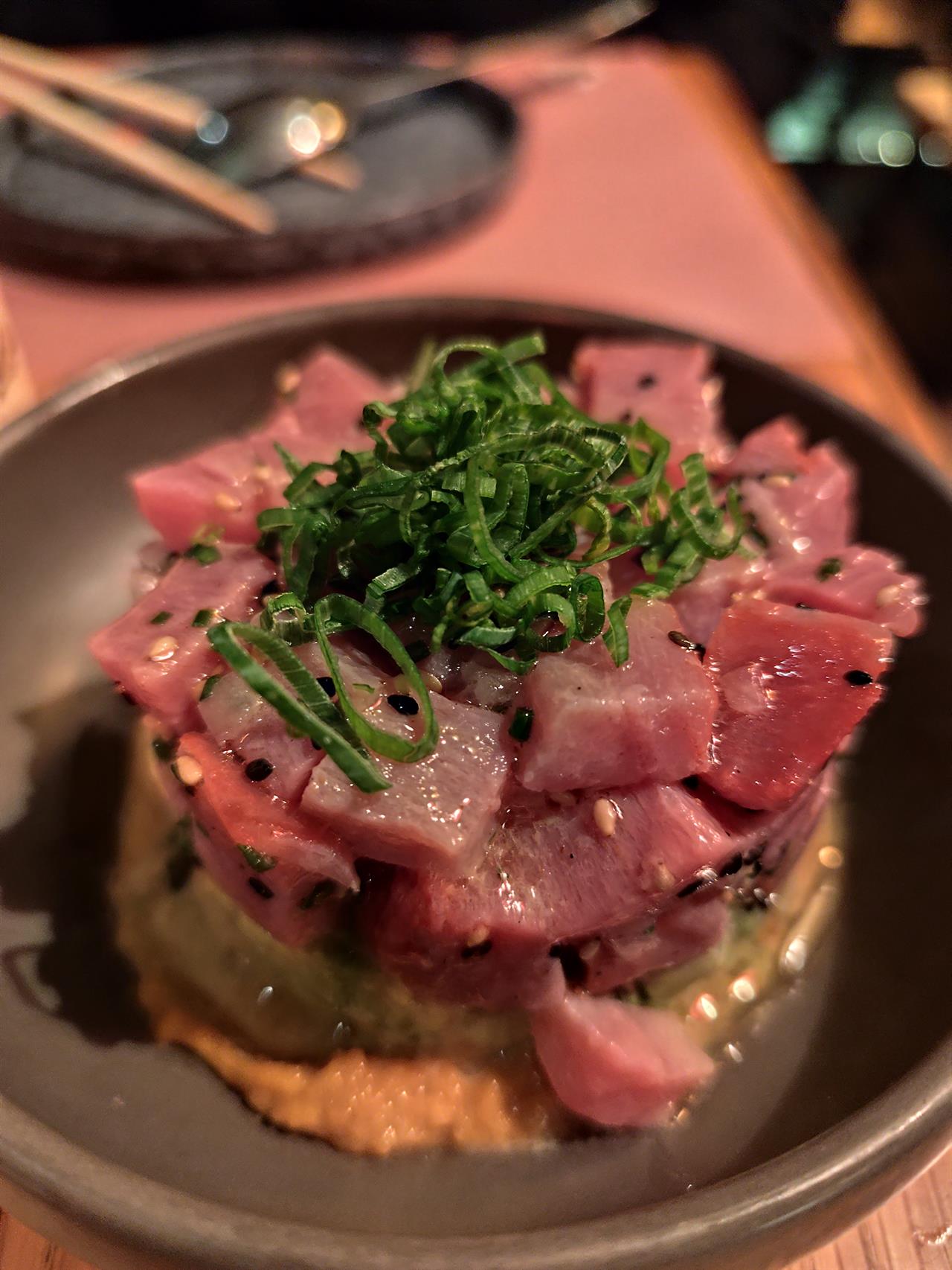 Η μπάρα του και οι εντυπωσιακές ασιατικές τοιχογραφίες μας έδωσαν την αφορμή που ψάχναμε για να βγάλουμε τον ινφλουένσερ που κρύβουμε καλά μέσα μας και να φωτογραφηθούμε μπροστά τους, όσο κόσμος πηγαινοερχόταν και γέμιζε τα τραπεζάκια του sushi bar. Καλό θα είναι αν θελήσεις να επισκεφθείς τον χώρο να προνοήσεις και να κάνεις την απαραίτητη κράτηση, καθώς, παρότι Δευτέρα (μια off peak καθημερινή), το Yuzu ήταν γεμάτο μέσα κι έξω.