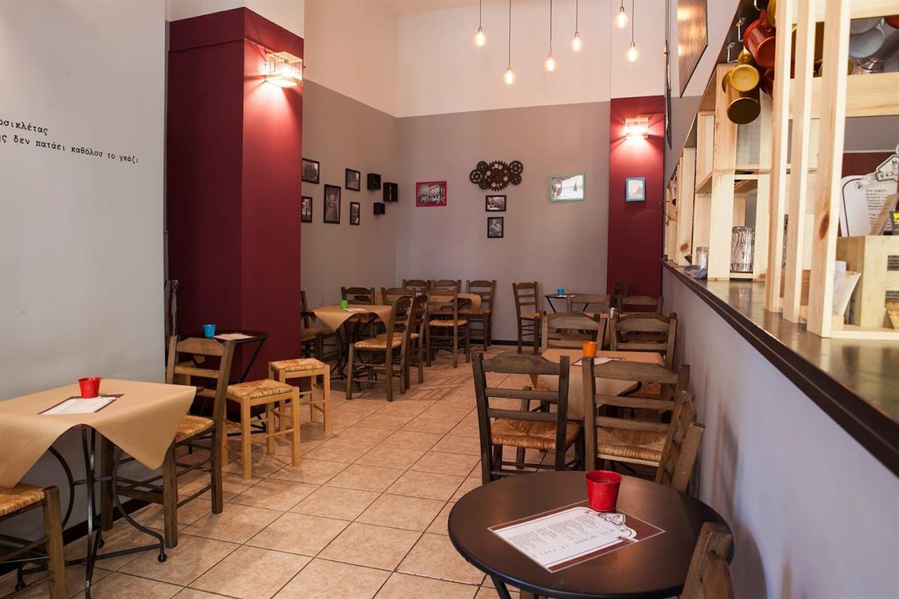 Ασπρόμαυρες αρτιστίκ φωτογραφίες κάνουν ωραία αντίθεση με αναφορές στην παράδοση, σαν την κουρελού που αγκαλιάζει την εσοχή του τοίχου πίσω από το τραπέζι μας. Στους μαυροπίνακες τα μεζεδάκια της ημέρας είναι γραμμένα με κιμωλία. Τσουγκρίσματα και γέλια αντηχούν, η ατμόσφαιρα είναι χαλαρή και παρεΐστικη, περνάς την πόρτα και μοιάζει λες και είναι Σάββατο, πάει η δευτερίλα, εξαφανίστηκε. Πώς το έλεγε ο Μαραβέγιας, στη Μιαούλη με ρακή κάθε μέρα είναι γιορτή;