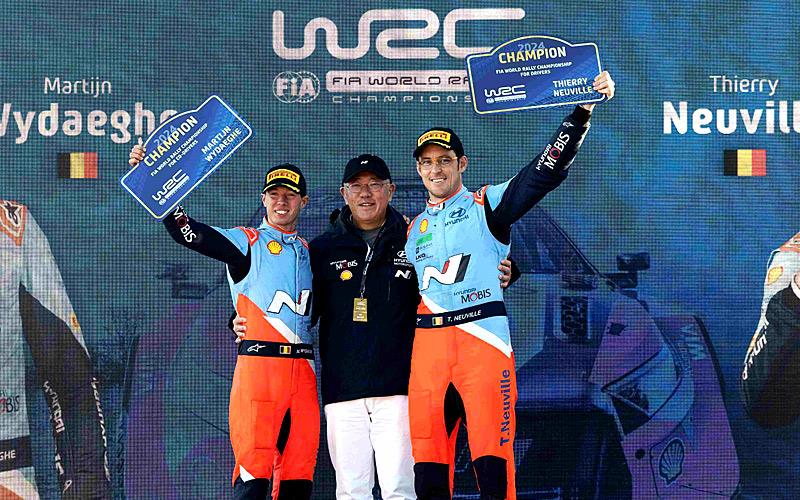 Η Hyundai Motorsport πανηγυρίζει τον πρώτο τίτλο Οδηγών και Συνοδηγών του Παγκόσμιου Πρωταθλήματος Ράλι (WRC) της FIA με τους Thierry Neuville και Martijn Wydaeghe.