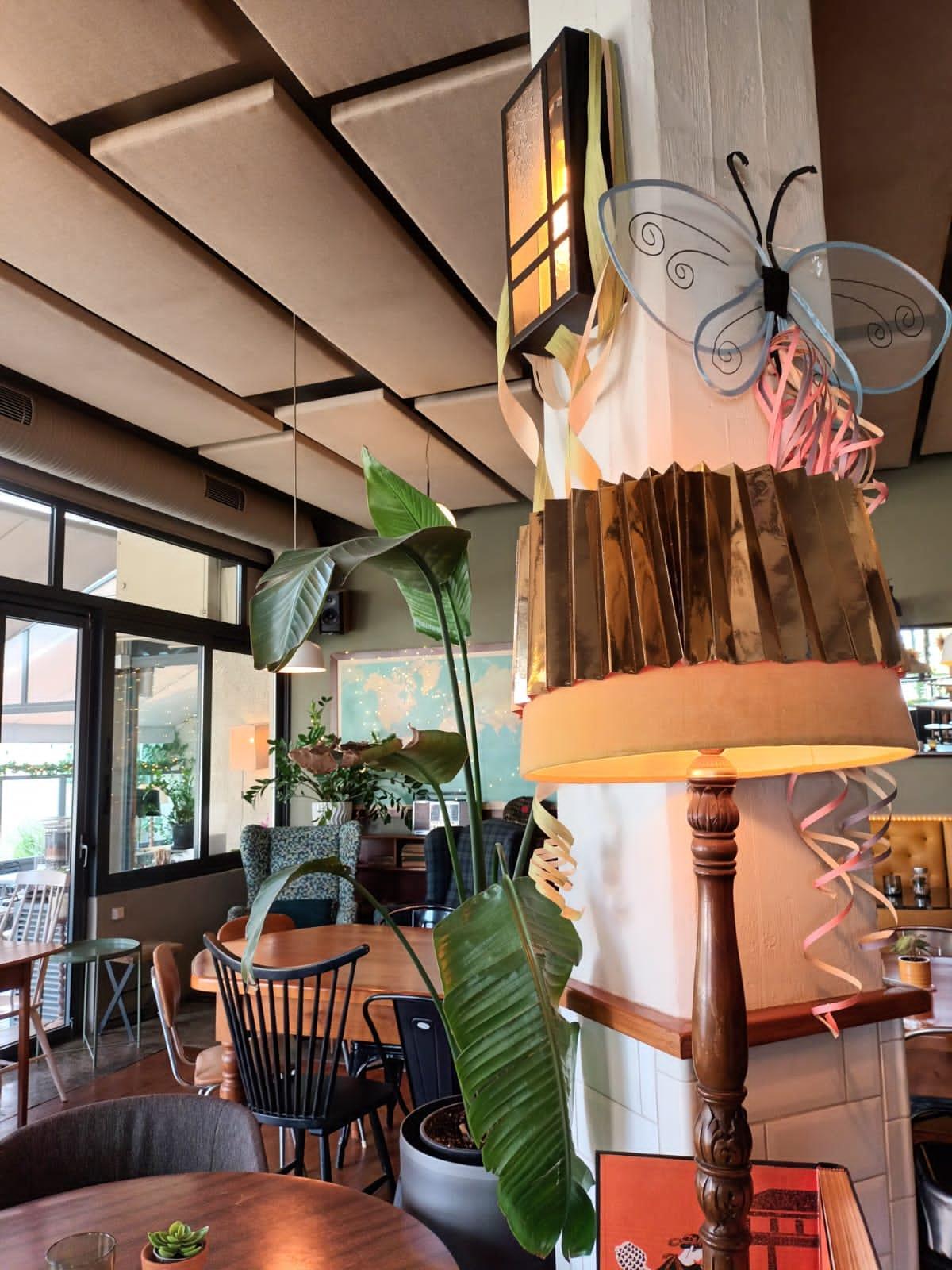 Δεν είναι, ωστόσο, μόνο αυτά: Είναι και ο πεντάμορφος χώρος, με τα βίντατζ μοναστηριακά τραπέζια, τις αφράτες πολυθρόνες, τους ατμοσφαιρικούς φωτισμούς που φτιάχνουν σκηνικό καταφυγίου από τη μια –οριακά εύχεσαι έξω από τις μεγάλες τζαμαρίες να χιόνιζε– και η ζεστή, σκεπαστή αυλή με τα τραπέζια της που αγαπούν οι καπνιστές της παρέας από την άλλη.