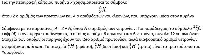 Όπως ίσως γνωρίζουμε, ο πυρήνας είναι μια μικρή σφαιρική περιοχή, με ακτίνα της τάξης των 10-15 μέτρων, μέσα στην οποία είναι συγκεντρωμένο όλο το θετικό φορτίο του ατόμου. Ο πυρήνας περιβάλλεται από κινούμενα ηλεκτρόνια, τέτοιου αριθμού ώστε το συνολικό φορτίο του ατόμου να είναι μηδέν. Τότε λέμε ότι το άτομο είναι ουδέτερο.