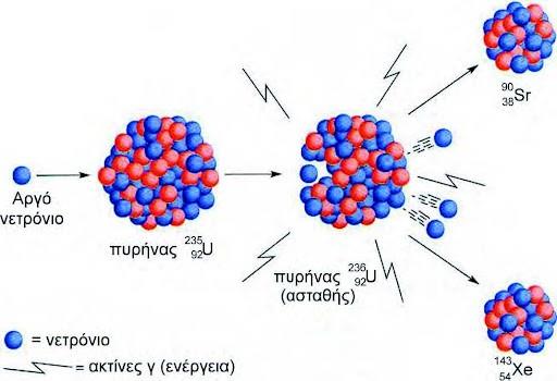 Σχήμα 2: Πυρηνική σχάση ουρανίου.