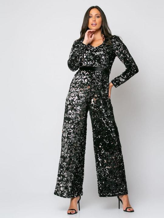 Ολόσωμη βελούδινη μαύρη φόρμα με παγιέτα.