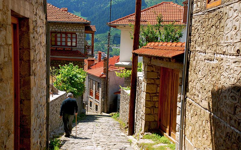 Το Μέτσοβο είναι ιδανικό για να το περπατήσεις. Οι μικρές αποστάσεις του χωριού και η αρχιτεκτονική των κτιρίων κάνουν την εξερεύνηση άνετη και ευχάριστη. Παραδοσιακά σπίτια, χτισμένα με πέτρα και ξύλο, με στέγες από πλάκες, απλώνονται ανάμεσα σε στενά λιθόστρωτα δρομάκια που κατηφορίζουν. Στην καρδιά του χωριού, μια γραφική πλατεία με επιβλητικά πλατάνια φιλοξενεί ταβέρνες, καφετέριες και καταστήματα γεμάτα παραδοσιακά ξυλόγλυπτα και τοπικά υφαντά.