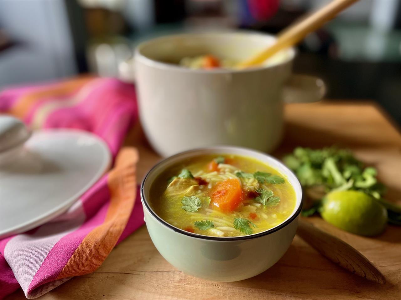 ΚΟΤΟΣΟΥΠΑ ΜΕ ΚΟΥΡΚΟΥΜΑ, GINGER & NOODLES