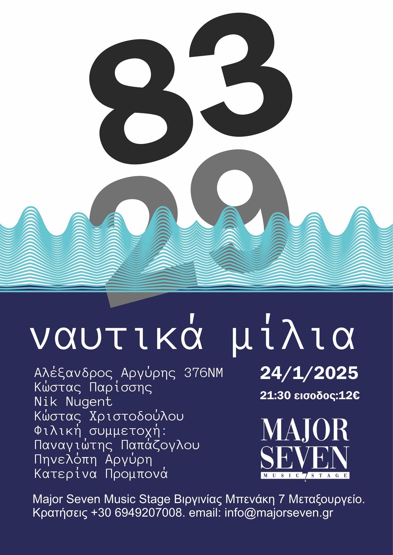 Παρέα με τους Κώστα Παρίσση στην κιθάρα, Nik Nugent στα πλήκτρα και τον Κώστα Χριστοδούλου στα κρουστά θα μας παρουσιάσουν το άλμπουμ «83 ναυτικά μίλια», καθώς και το ανέκδοτο επερχόμενο άλμπουμ με τίτλο «29 ναυτικά μίλια» σε πρώτη εκτέλεση.
