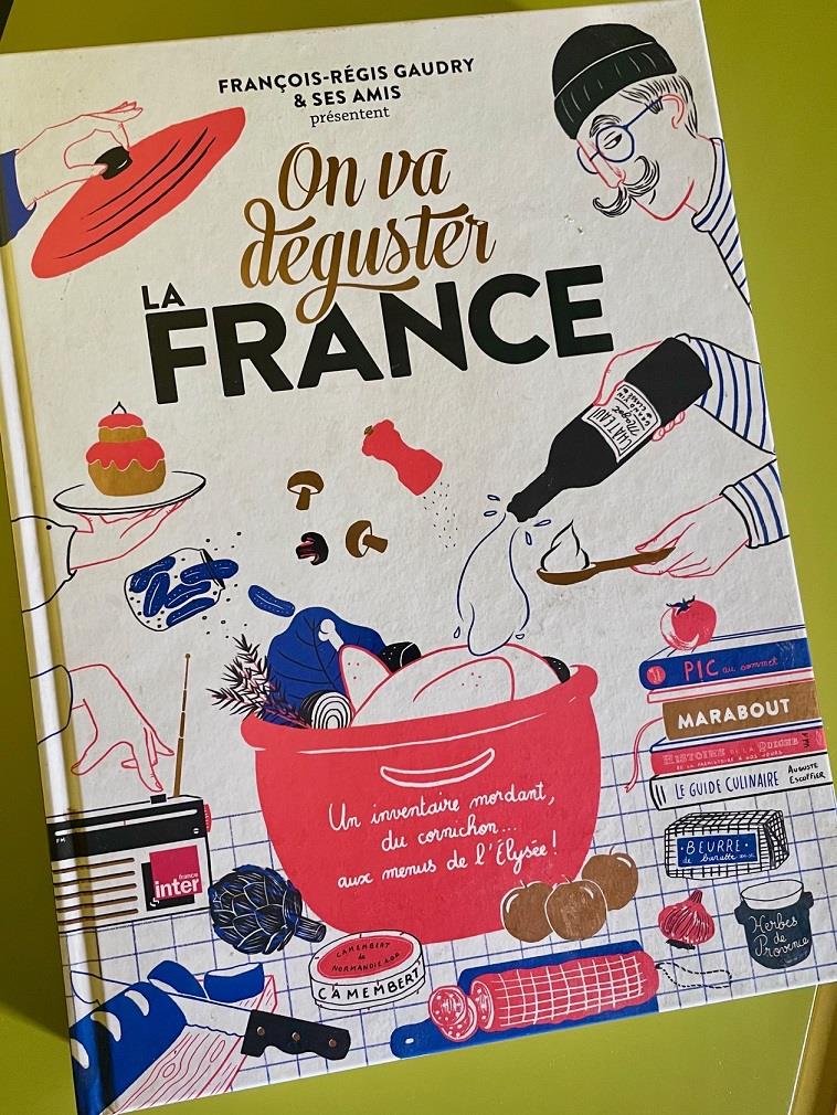 Δώρο πολύτιμο του Γάλλου εξαδέλφου μου, το βιβλίο είναι ακριβώς αυτό που λέει ο τίτλος του: «Θα γευτούμε τη Γαλλία». Γευόμαστε την ιστορία και τη γεωγραφία της, τα κοινωνικά γεγονότα που σημάδεψαν τη γαστρονομία της, την εξέλιξή της μέσα στους αιώνες. Γευόμαστε τα ξακουστά, εξαιρετικά της προϊόντα και το πώς μεταμορφώνονται σε θεσπέσια εδέσματα. Καθόμαστε σε τραπέζια οικογενειακά απολαμβάνοντας τα πολύωρα γεύματα που τόσο αγαπούν οι άνθρωποι εκεί, πηγαίνουμε σε φημισμένα εστιατόρια με αστεράτους σεφ αλλά και σε καθημερινά μπιστρό και ταπεινά ταβερνεία όπου μαγειρεύουν με πάθος την παράδοση. Μαθαίνουμε χίλια δυο πράγματα που δεν ξέραμε κι όλα αυτά με χιούμορ κι ελαφράδα και απίθανα όμορφα σχέδια και σκίτσα.